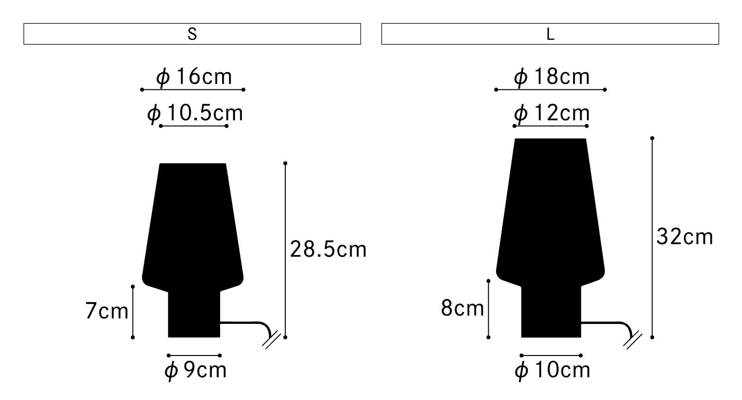 | サイズ | S : φ 16×H 28.5cm L : φ 18×H 32cm コード長:180cm (どちらのサイズも共通です) 詳しくはサイズ表をご確認ください |