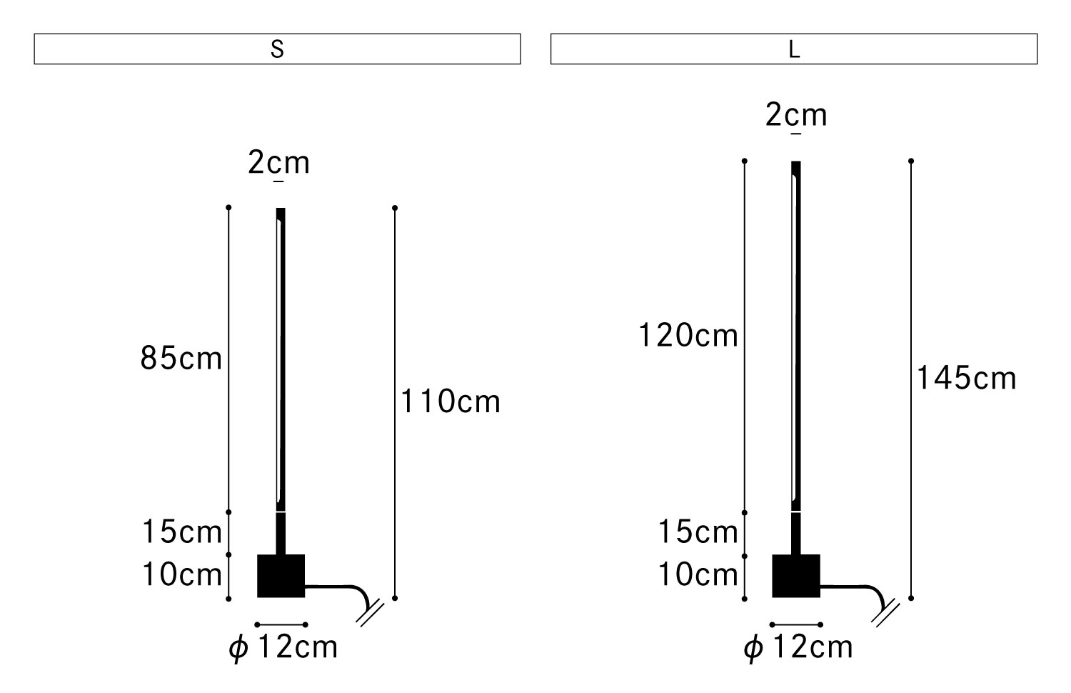 | サイズ | S : φ12×H110cm M : φ12×H145cm コード長:185cm 詳しくはサイズ表をご確認ください。 |