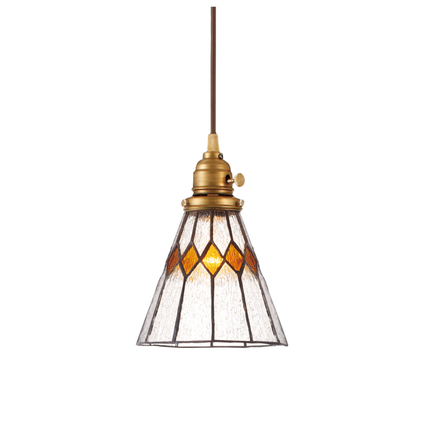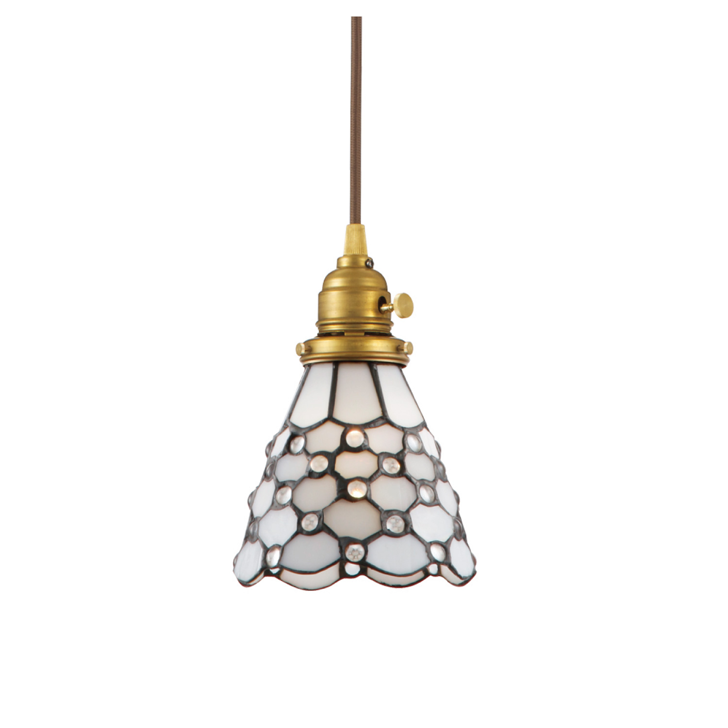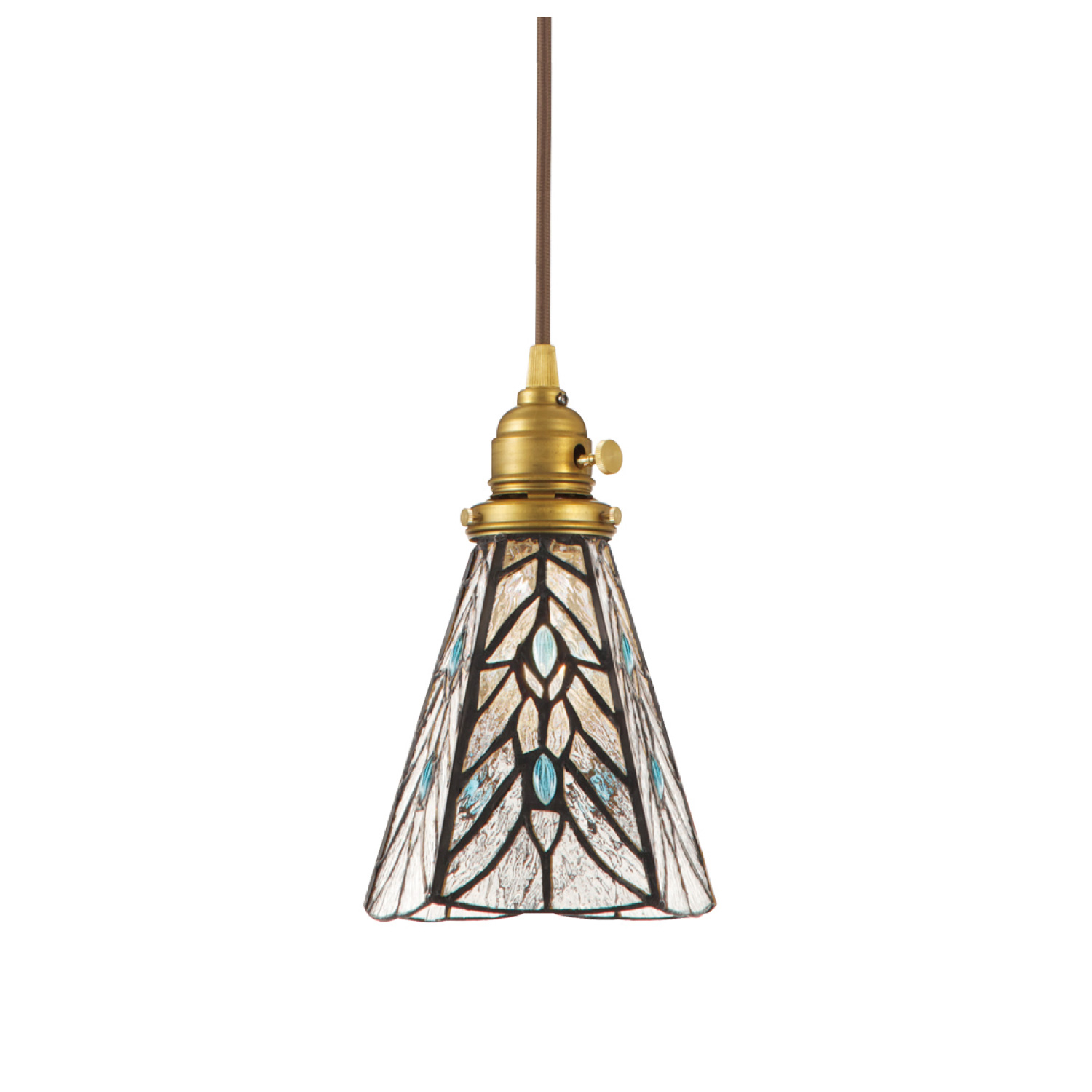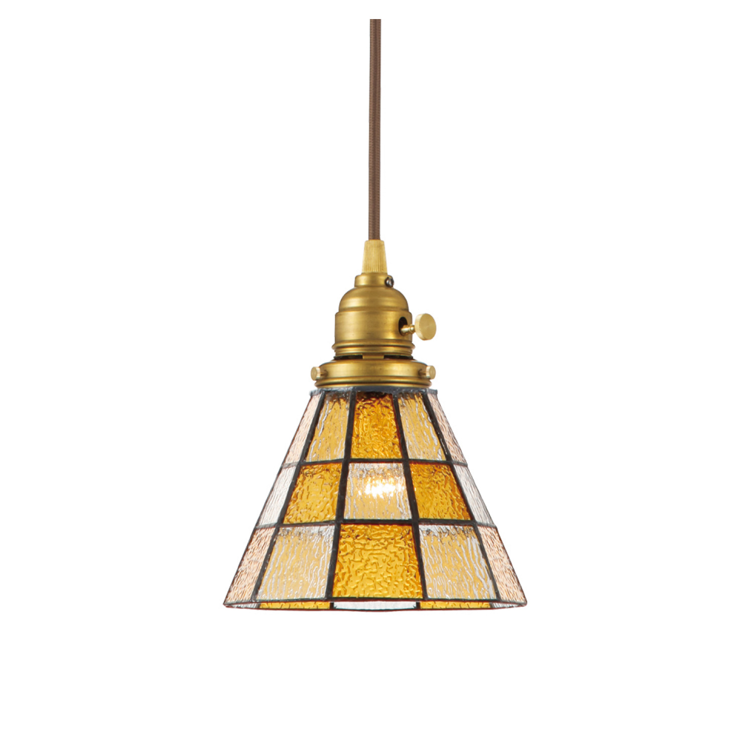 ステンドグラスのシェードは、細部までデザインや配色にこだわり、職人がひとつひとつ手作業で制作しています。ガラスシェードから溢れる光は、優しくてどこか懐かしい。真鍮製ソケットとの組合せで、よりレトロな雰囲気を醸し出しています。