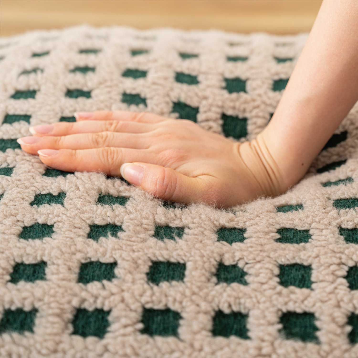 凹凸のあるボア素材を使用し、立体的な質感のチェック模様と可愛らしいフォルムが特徴の"ティッダ スツール"。ポコポコとした触り心地が楽しく、空間を華やかに彩ります。高さ約45cmで安定感があり、スツールとしてだけでなくソファと組み合わせてオットマンとしてや簡単なサイドテーブルとしてもお使いいただけます。本体内部にはソファで使用されるSバネとウィービングベルトを採用し、適度な弾力を備えた疲れにくい座面を実現しました。軽量設計で重量約4.5kgと持ち運びも簡単で、脚フレームを本体に取り付けるだけの簡単組立式となっています。また、脚先には床を傷つけない保護パーツが付属しており、様々な場所で安心してお使いいただけます。