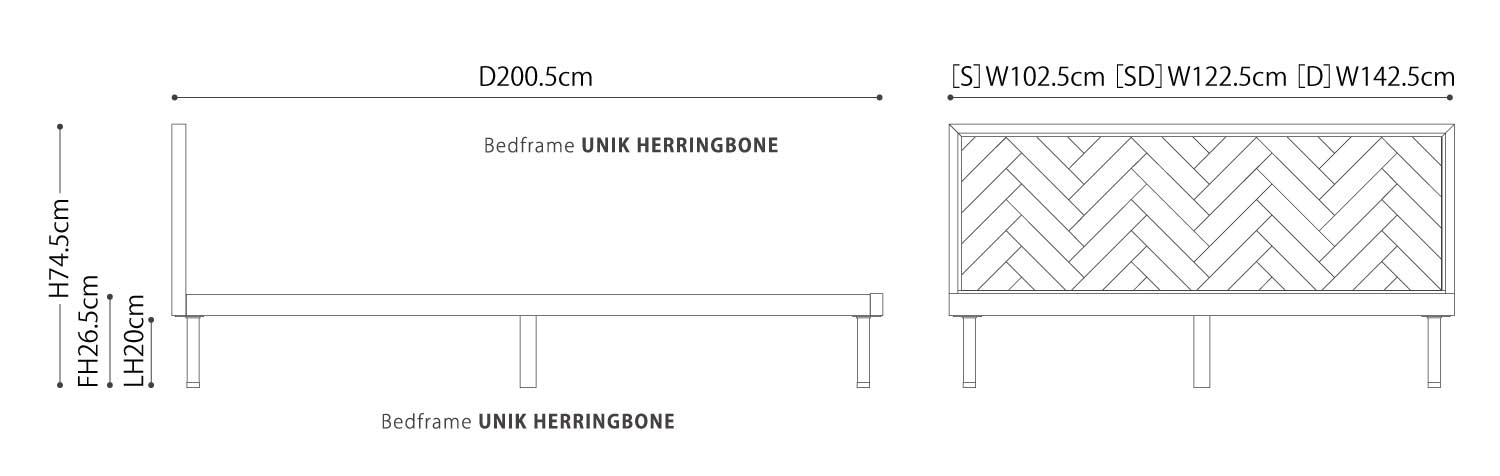 | サイズ | シングル(S):W102.5×D200.5×H74.5×床面高26.5×床下隙間20㎝ セミダブル(SD):W122.5×D200.5×H74.5×床面高26.5×床下隙間20㎝ ダブル(D):W142.5×D200.5×H74.5×床面高26.5×床下隙間20㎝ |