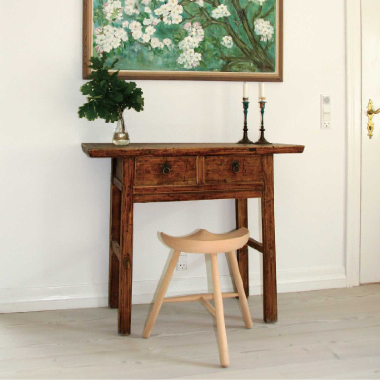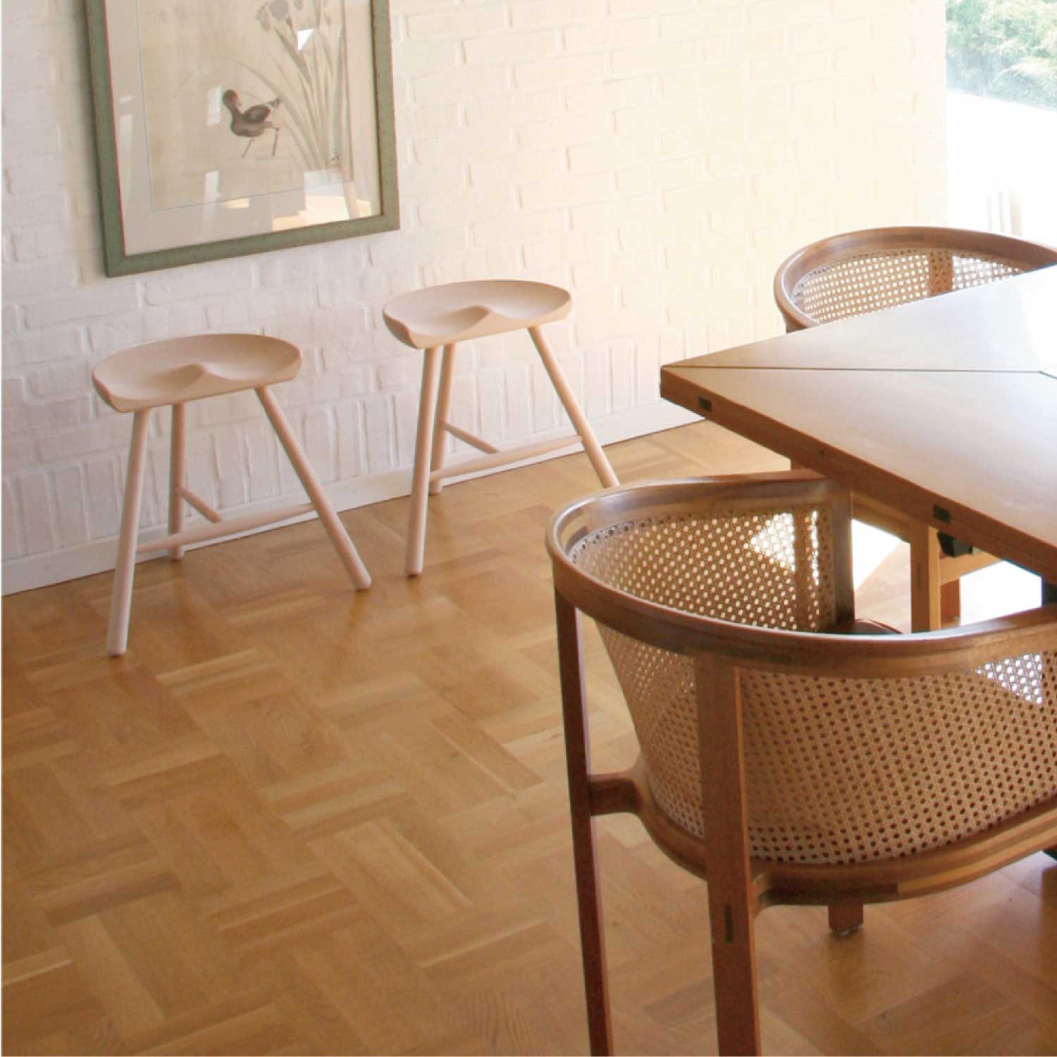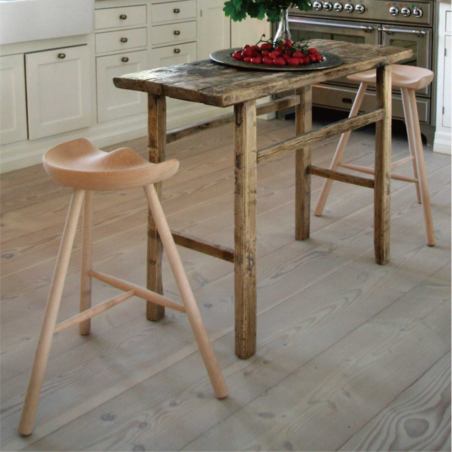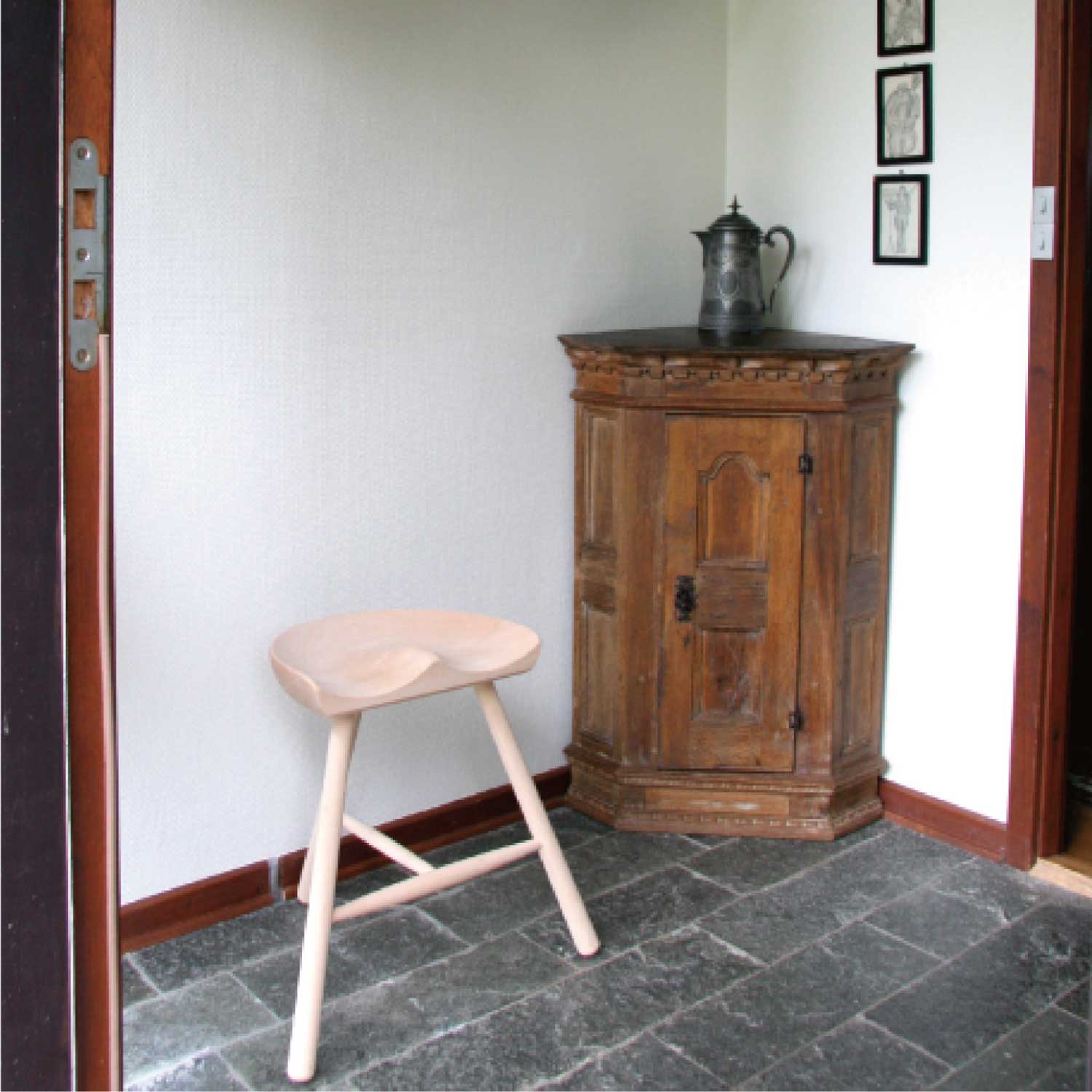 1970年代はじめに「シューメーカーチェア」の製作を始めたのは、 現在のオーナーであるラース・ワーナーの父親でした。 この3本脚のスツールの歴史は15世紀にさかのぼり、何世紀にもわたってわずかにそのかたちを変えたものの、平らな座面の牛の乳搾り用のスツールとして使われてきました。 そのうちに、靴職人が座り心地を良くする為に お尻のかたちにあわせて削ったことがきっかけになり、それにインスピレーションを得て現在のかたちに近づきました。 そのために、シューメーカーチェアと呼ばれるようになったのです。