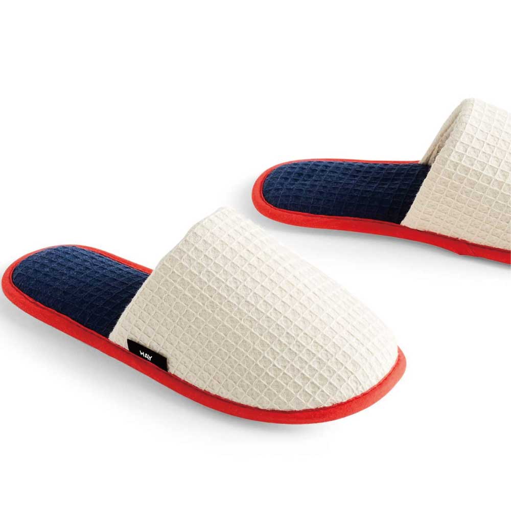 立体的なワッフル生地にすることで柔らかさが増し、履き心地のよいスリッパに仕上げました。また、吸収性の良いコットンを採用。滑り止めとしてラバーソールもついているので、日常使いに最適です。フリーサイズ。