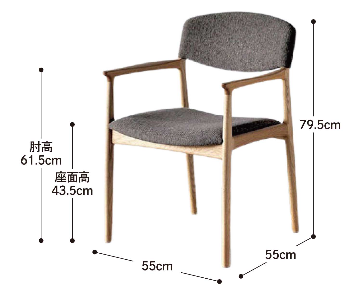 | サイズ | W55 × D55 × H79.5cm | SH43.5cm | AH61.5cm |