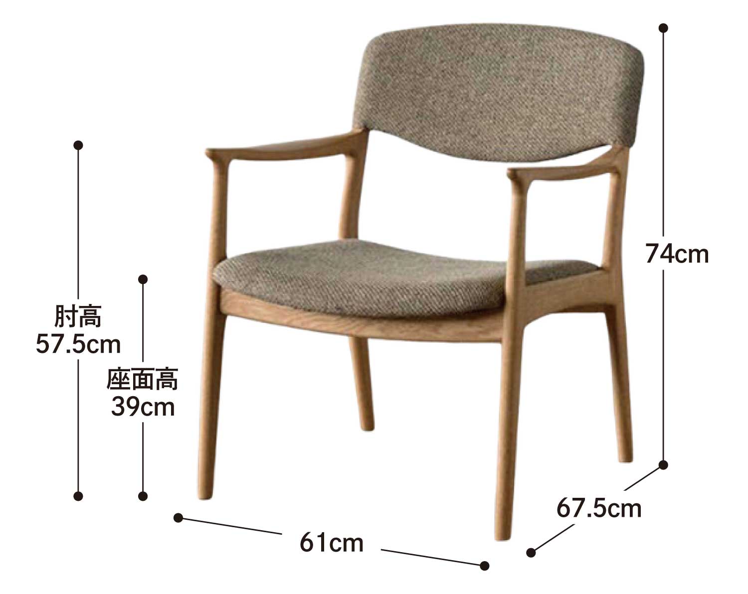 | サイズ | W61 × D67.5 × H74cm | SH39cm | AH57.5cm |