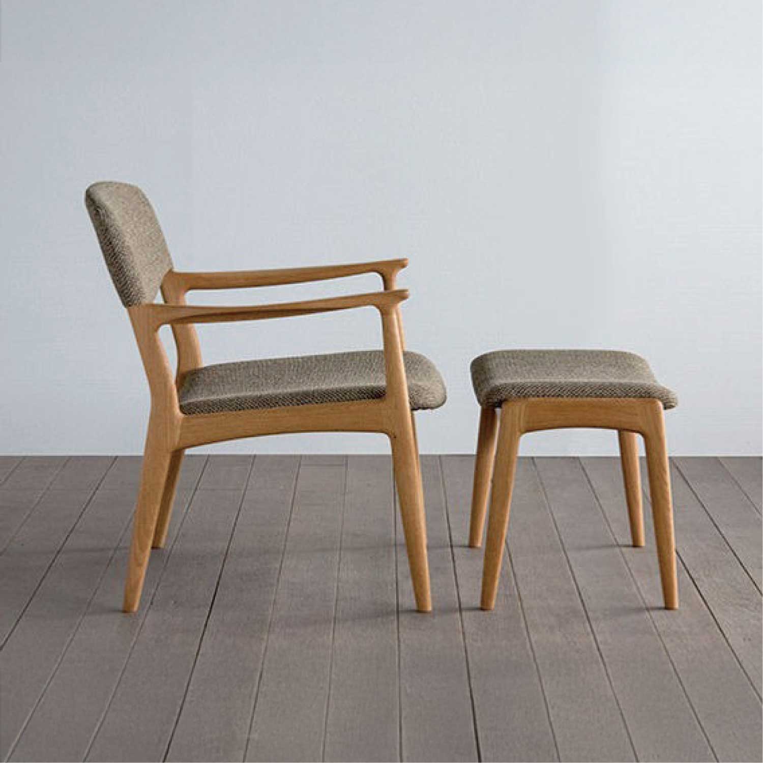 ノースラウンジチェアのオットマンですが、単独でスツールとしても使えます。玄関先でのシューズスツールとしても最適です。奥行きはコンパクト、間口はワイドで、大きなカーブの座板がもゆったりと身体を受け止めてくれます。材は4種類から選べます。