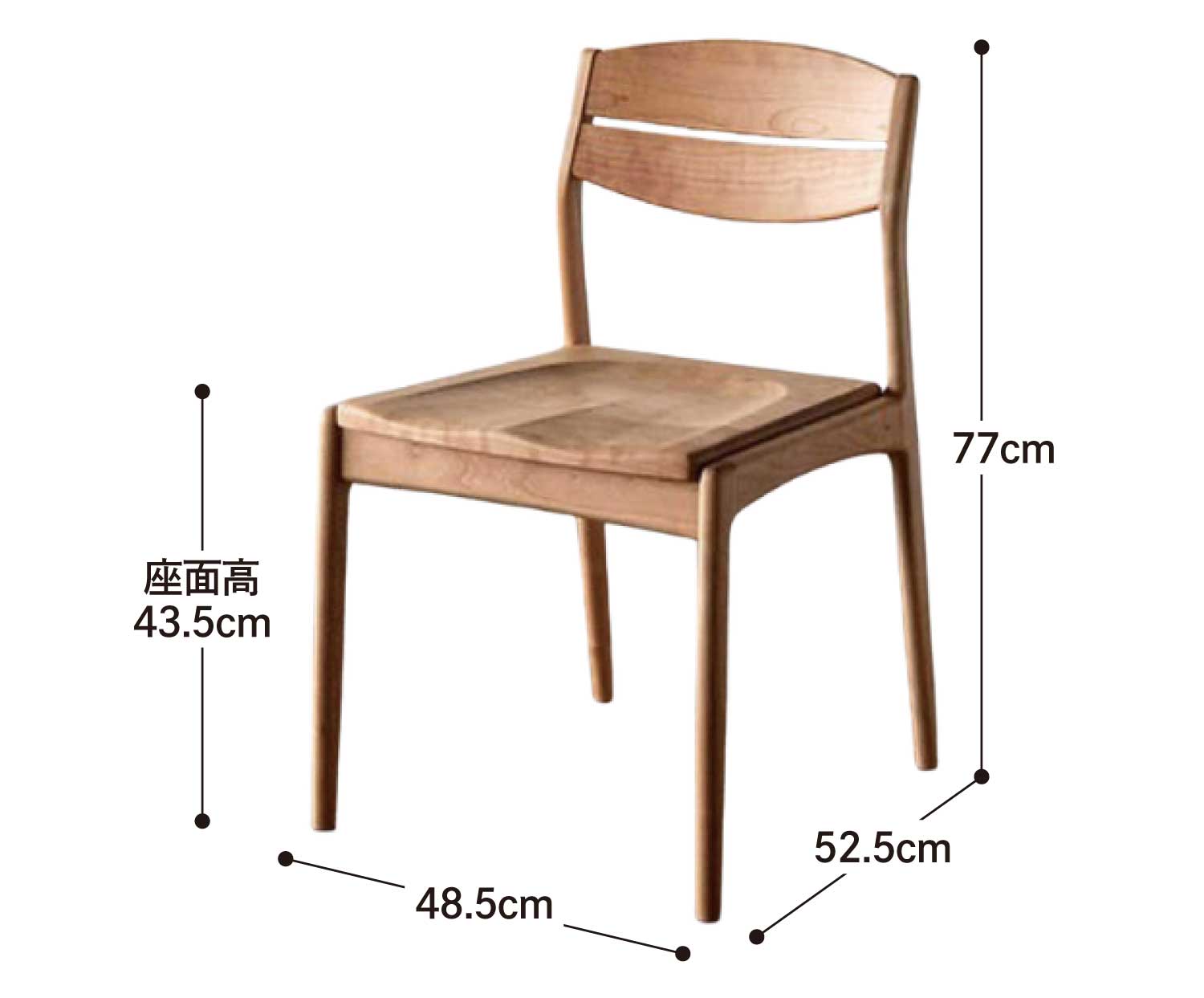 | サイズ | W48.5 × D52.5 × H77cm | SH43.5cm |