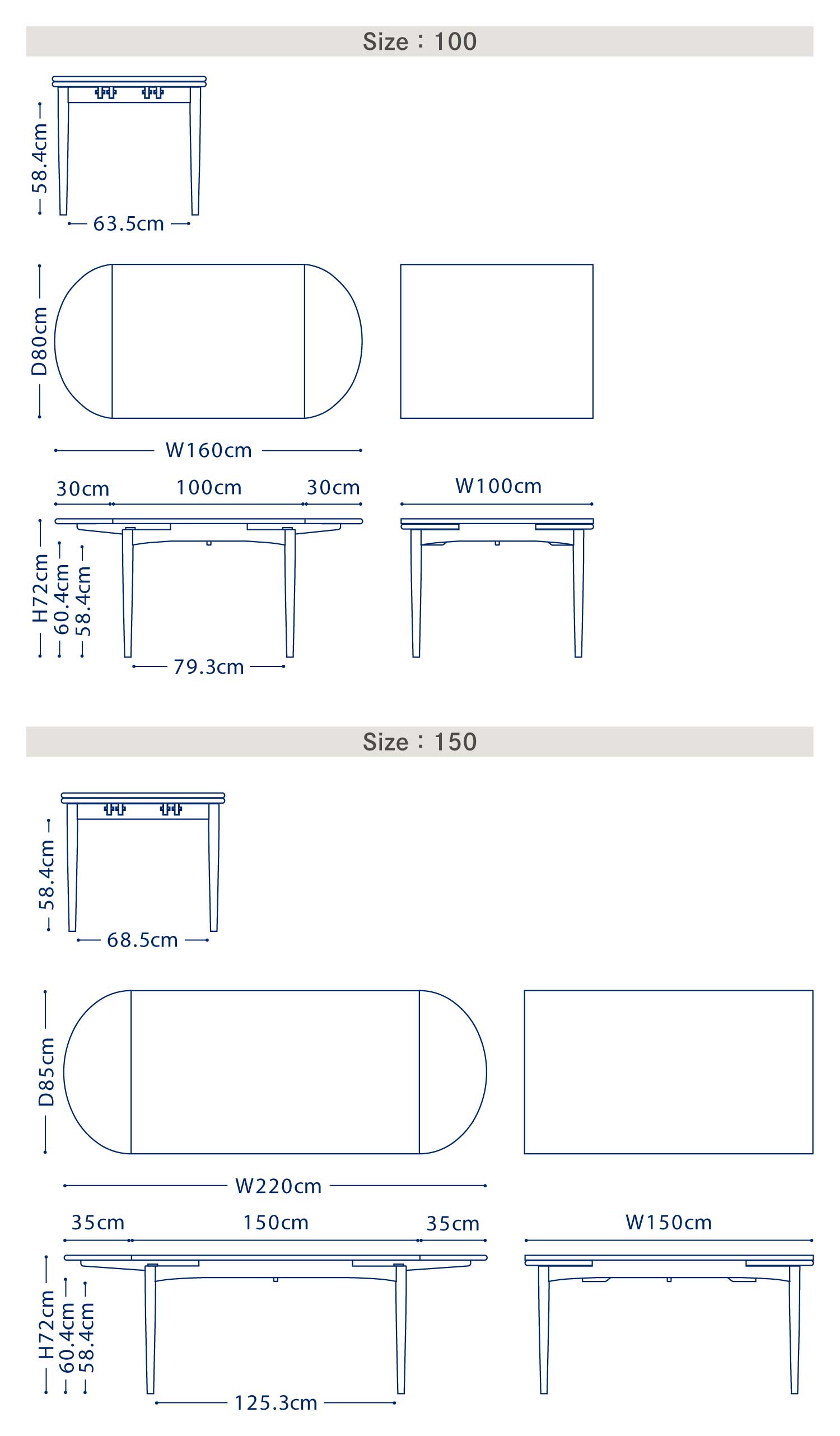 | サイズ | [100]W100-160 × D80 × H72cm [150]W150-220 × D85 × H72cm |