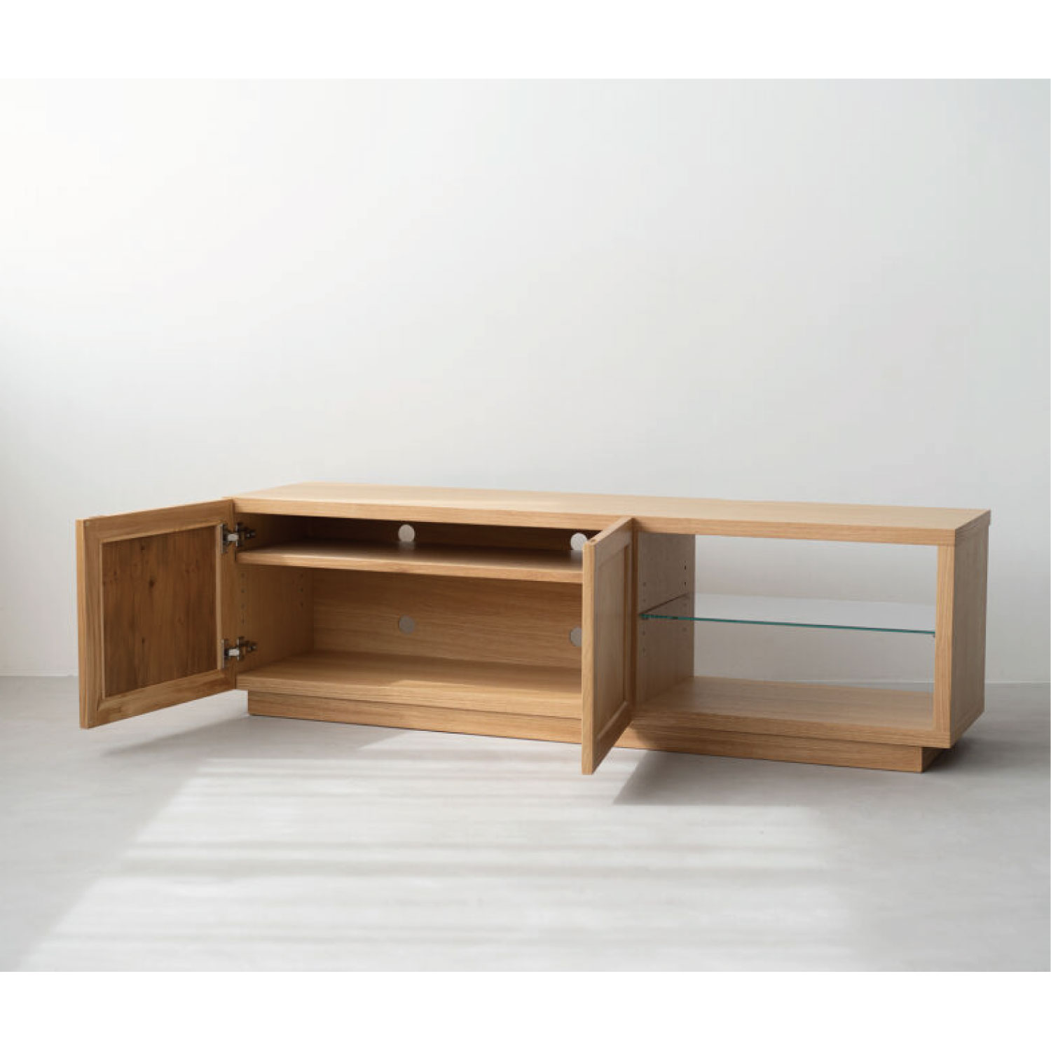 | 素材 | OAK:オーク無垢材・突板材(ポリウレタン塗装)、プリント化粧板(内部)、強化ガラス(棚板) WN:ウォールナット無垢材・突板材(ポリウレタン塗装)、プリント化粧板(内部)、強化ガラス(棚板) |