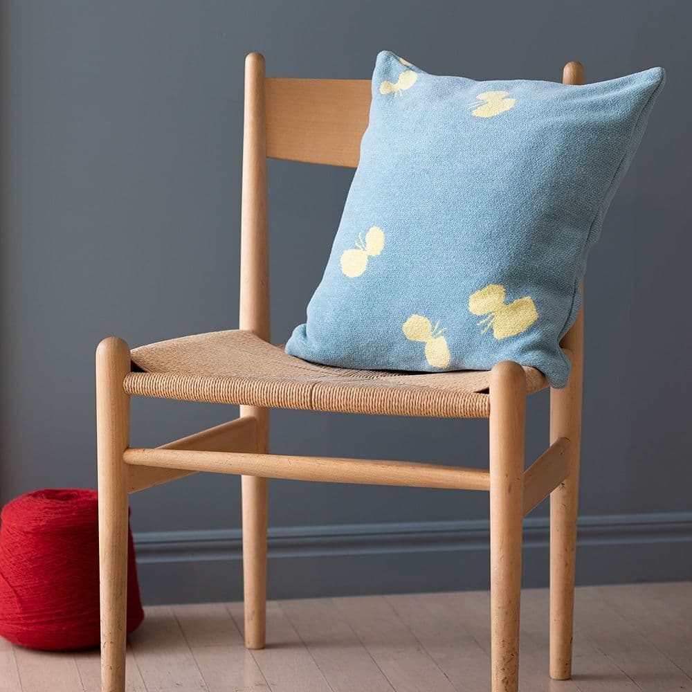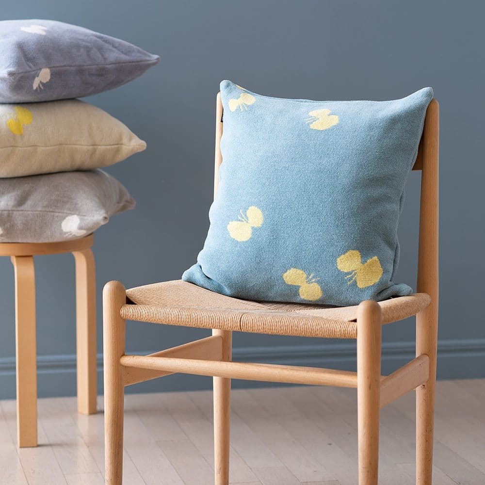 オーガニック100%のシュニールコットンを使用した、肌触りのよいクッションカバー。ミナ ペルホネンの世界観を小物で取り入れて。