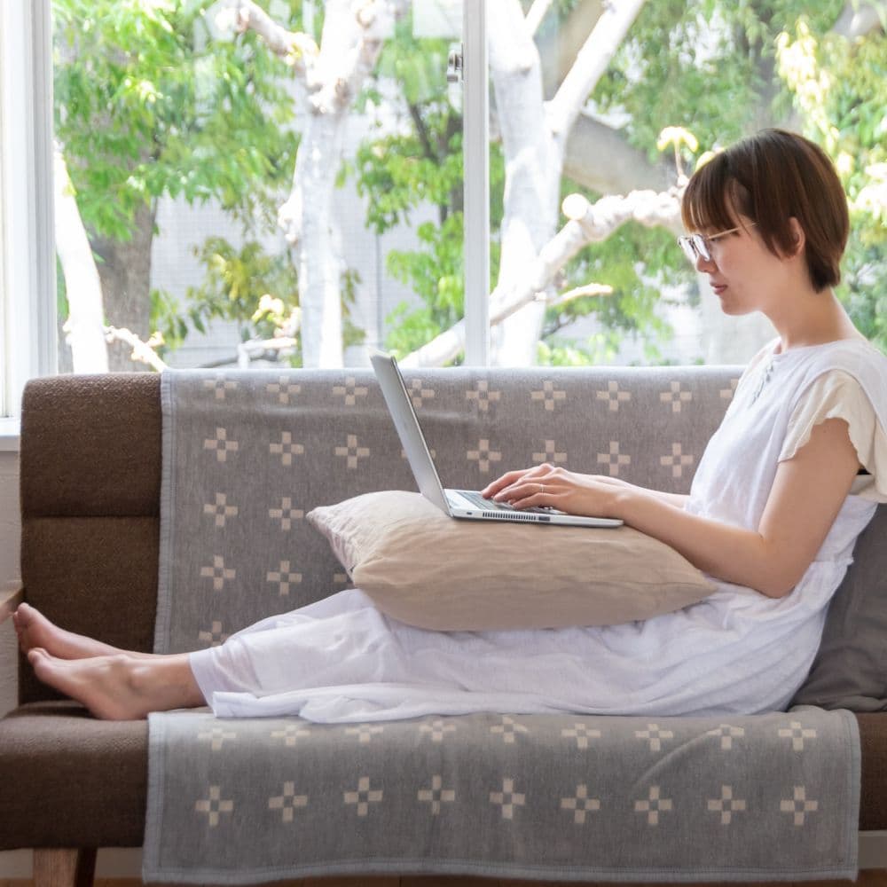 KLIPPANのシュニールコットンのハーフサイズは90×140cm。膝から腰全体まで包みこめると喜ばれています。この上ない肌ざわりの極上シュニールコットンブランットは、ハーフサイズなら2人掛けのソファカバーにもぴったり。KLIPPANをソファに掛けるとインテリアのレベルがその瞬間からぐんと上がります。汗やヨゴレを防ぐのはもちろん、洗濯機で何度でも丸洗い、ソフトな質感を損なうことなく耐久性も抜群!