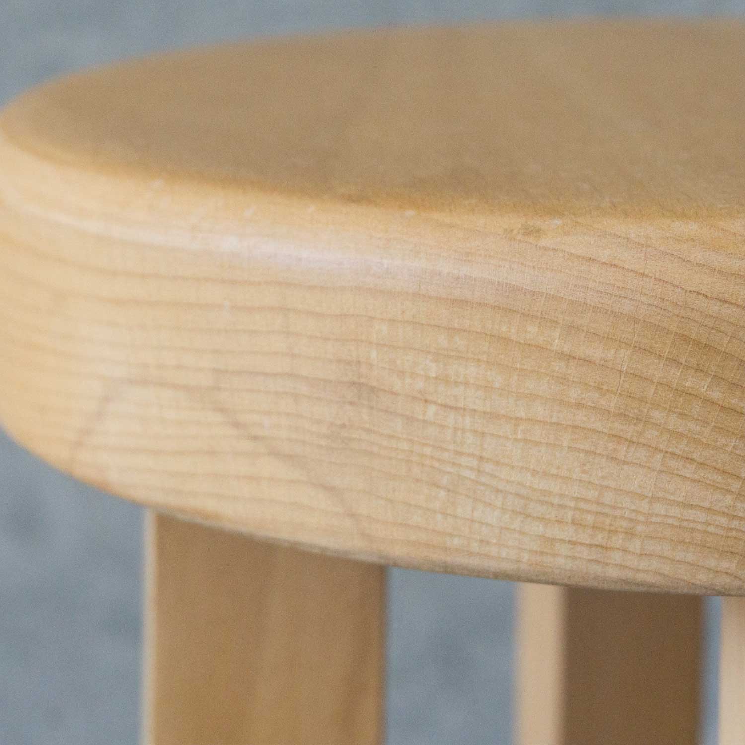 岡山県の山間の納屋で作られたことから名付けられたナヤスツールは、1974年に小松勲氏の手から生み出されました。小松氏が木彫りの備中神楽面の制作の際に作業用の椅子として使ったものです。小学校教員の定年を機に、生来の手先の器用さを活かして、備中神楽面という難しい木彫り面の制作を26年に渡り続けました。小松氏の作る備中神楽面は、五穀豊穣を祈る神事から生まれたもので、この地方では家内内安全、家運隆盛を願って、伝統的に家の玄関に置かれてきました。ナヤスツールは、20年以上もの間忘れられたまま納屋の二階に置かれていましたが、2020年に神楽面用の材木の中から発見されました。