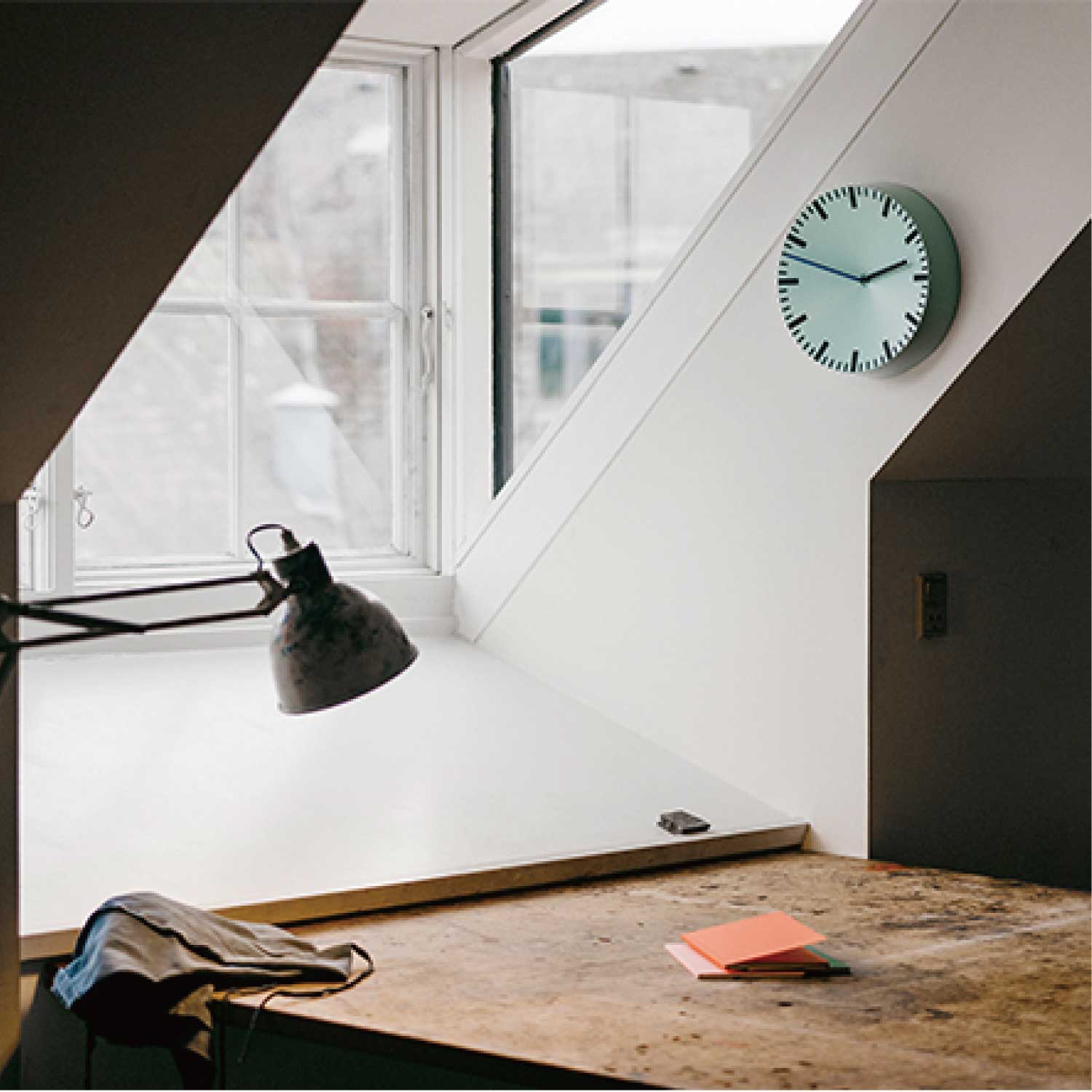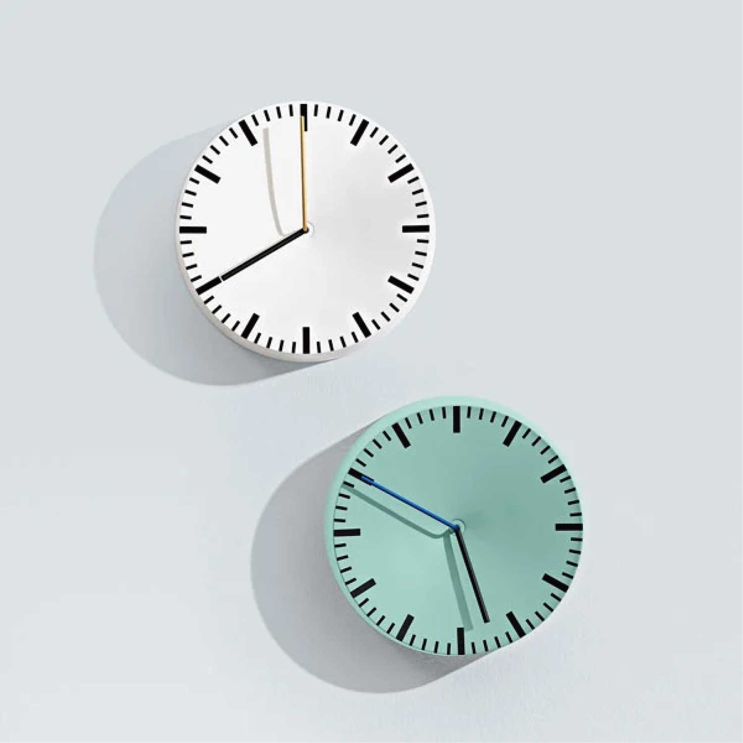 HAYの壁掛け時計「ANALOG」は、気圧計や計測機器のような道具感をベースにしたデザイン。中央が少しだけ凹んだ立体的な文字盤は、壁に掛けたときにやわらかな影が出て、平面的になりがちな壁面に奥行きをつくります。数字を使わないシンプルな構成ですが、針とインデックスのバランスがよく、時間はきちんと読み取りやすい。主張は強くないのに、ふと視界に入ると印象に残る、そんな佇まいです。家具や照明の邪魔をせず、でも空間の温度は少し整えてくれる。インテリアとしての時計を探している人にちょうどいい一台です。