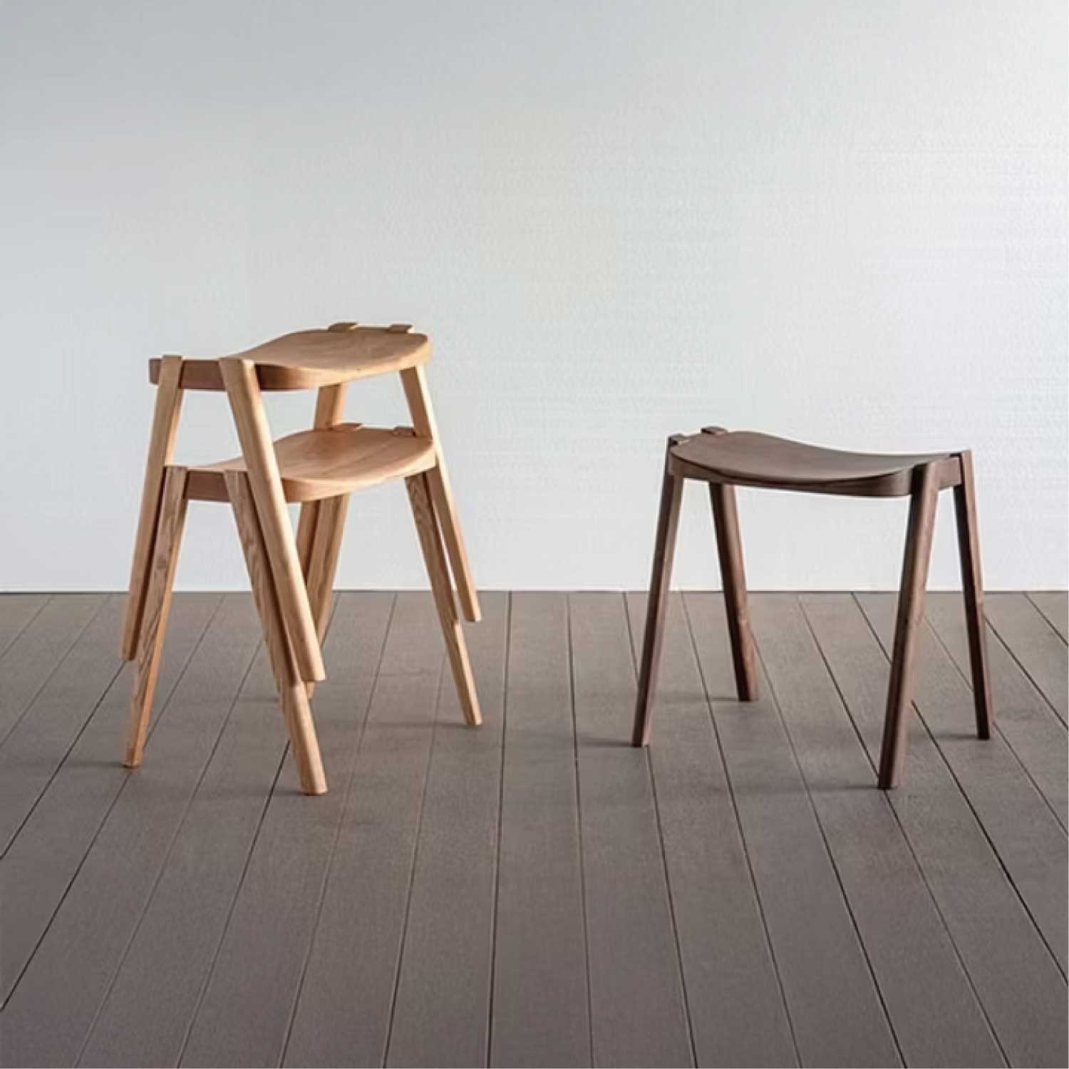 オール無垢材のシンプルなスツールです。キャッチチェアと同様に座板に直接脚が付き、貫がないユニークな構造。座板は大きなカーブに削られて、無垢材のチェアでありながら、軽快なイメージを醸し出しています。又、スタッキングも可能で使わない時はお部屋の隅に置いておけます。