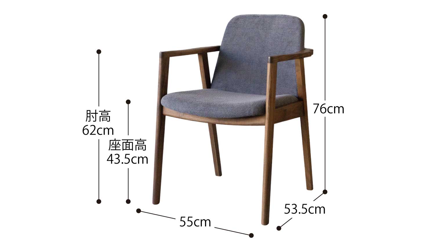| サイズ | W55 × D53.5 × H76cm | SH43.5cm | AH62cm |