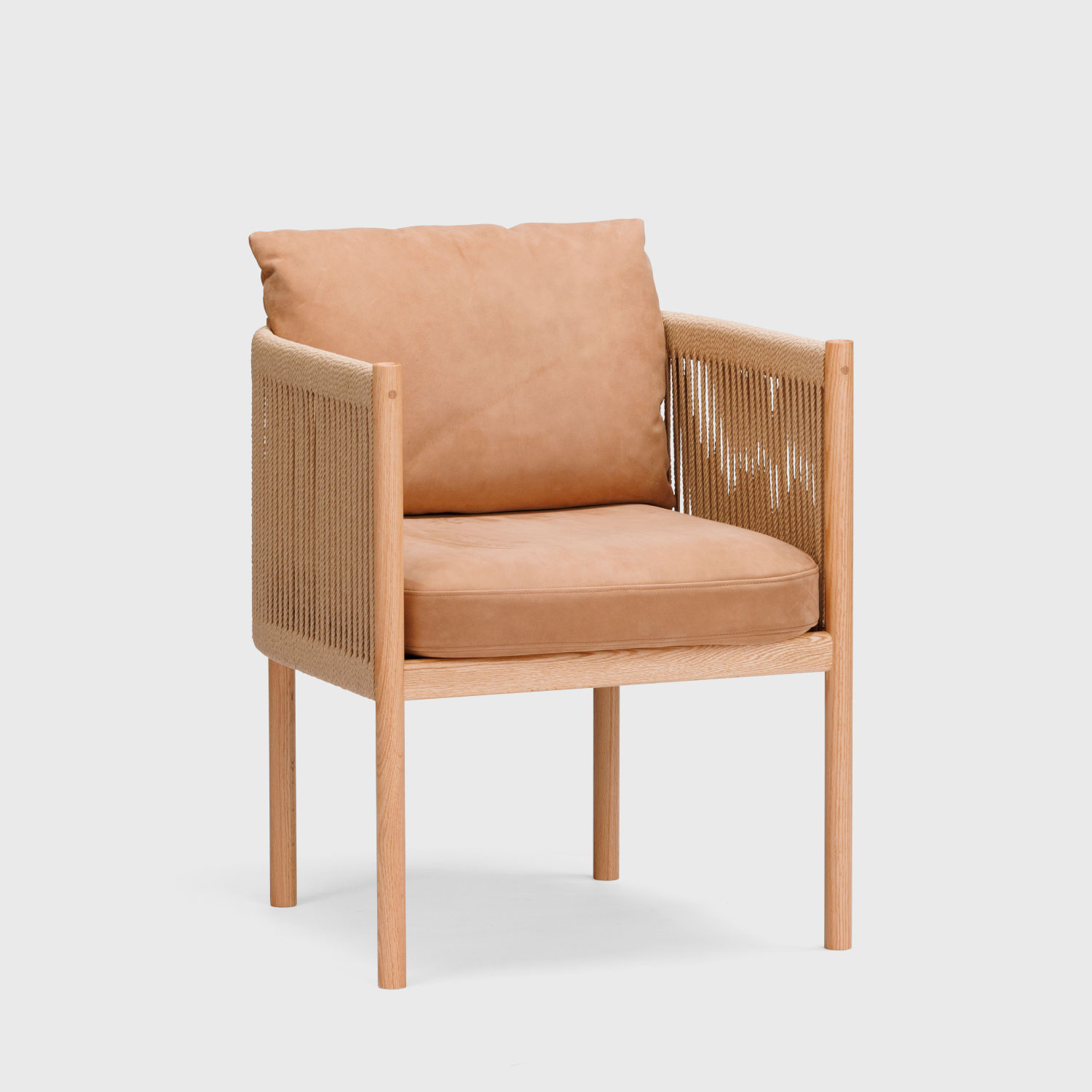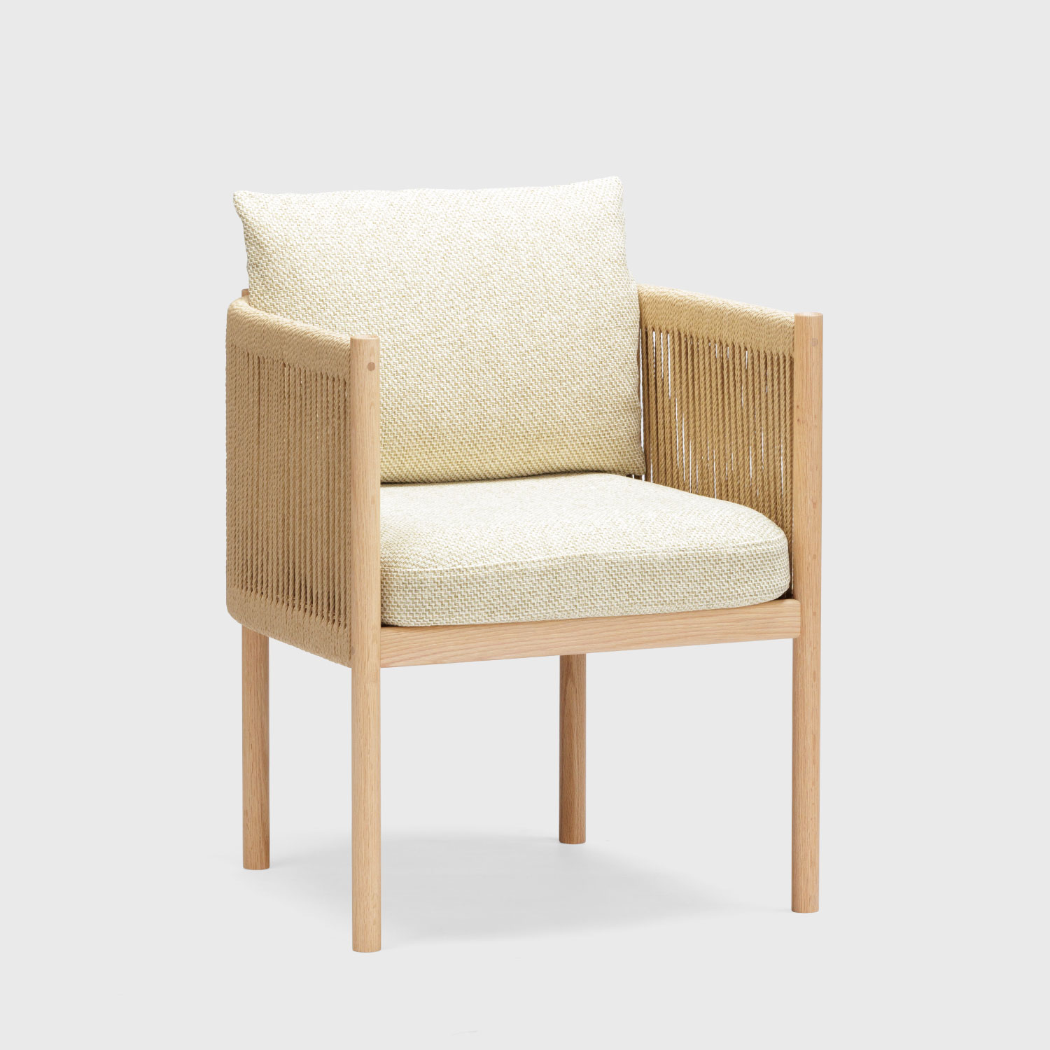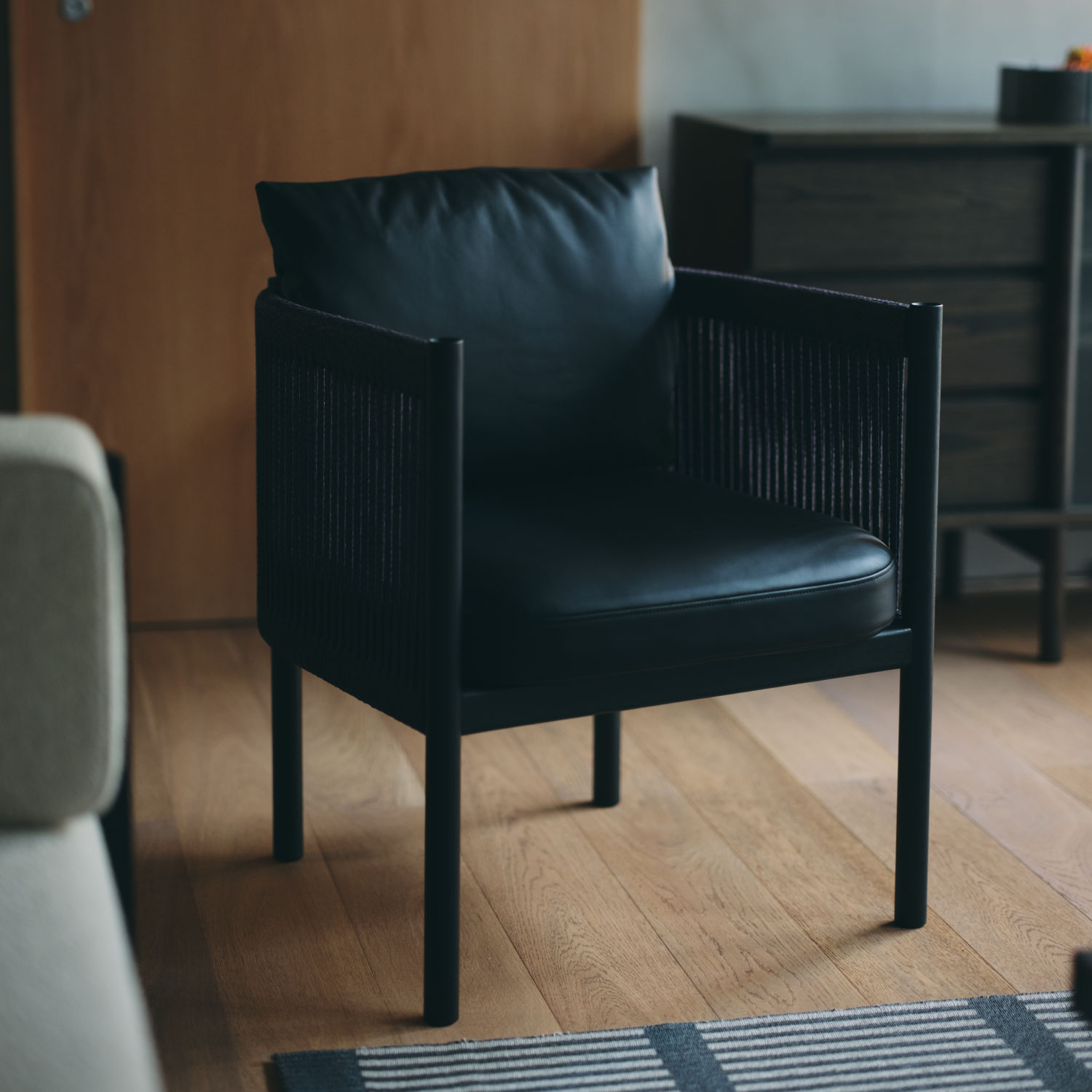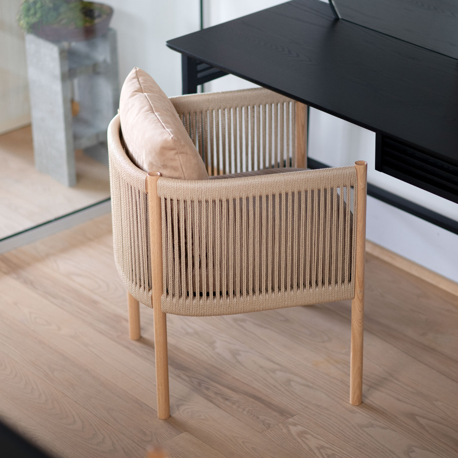 ブレイドチェアは、ノームアーキテクツのブレイドコレクションに新たに追加されたアイテムです。ブレイドコレクションでお馴染みのペーパーコードで編まれたアームレストに加え、三日月型の背もたれが特徴的なこのチェアは、贅沢なダイニングルームだけでなく、ライティングデスクにも合わせることができ、またコンパクトなラウンジチェアとしてもお使いいただけます。ブレイドチェアは元々、トランクホテル代々木公園のためにデザインされたチェアでしたが、2023年の有明デザインワークショップでさらにブラッシュアップされ、私たちのコレクションに採用されました。座面の高さはダイニング用とラウンジ用の2種類からお選びいただけます。