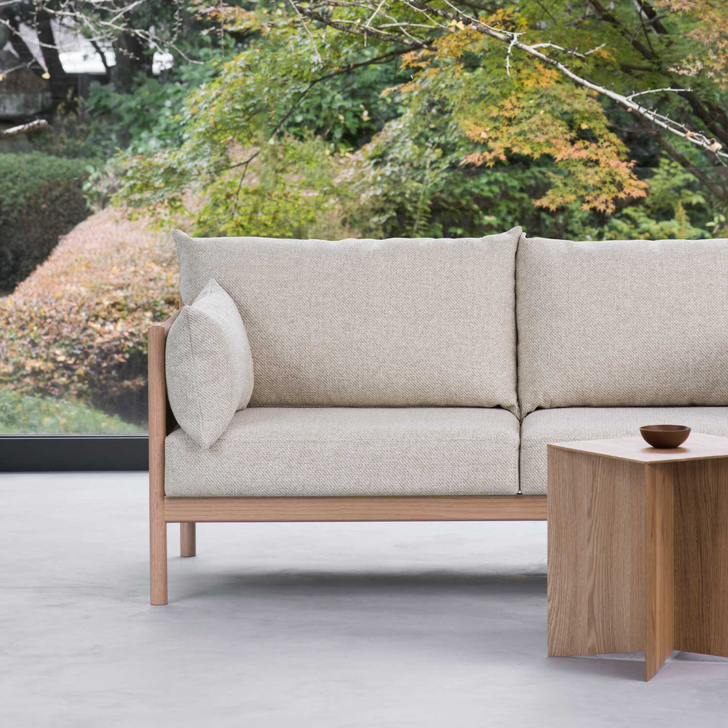 それにボルグ・モーゲンセン、ハンス・ボーリング、フィン・ユールの傑作を少しイメージしながら、伝統的なデンマークの職人が作る家具の要素を組み合わせました。深く低いソファは広くゆったりとした雰囲気のために創作されており、背面の美しい構造は壁面に沿って置いても、空間の中央に置いても完璧です。