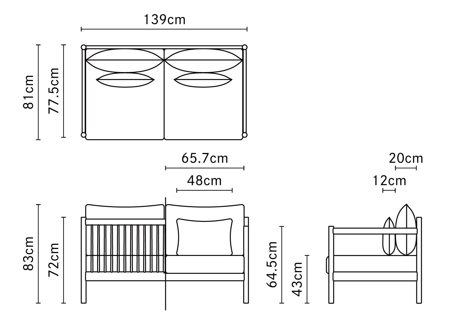 | サイズ | W139 × D81 × H83cm | SH43cm |
