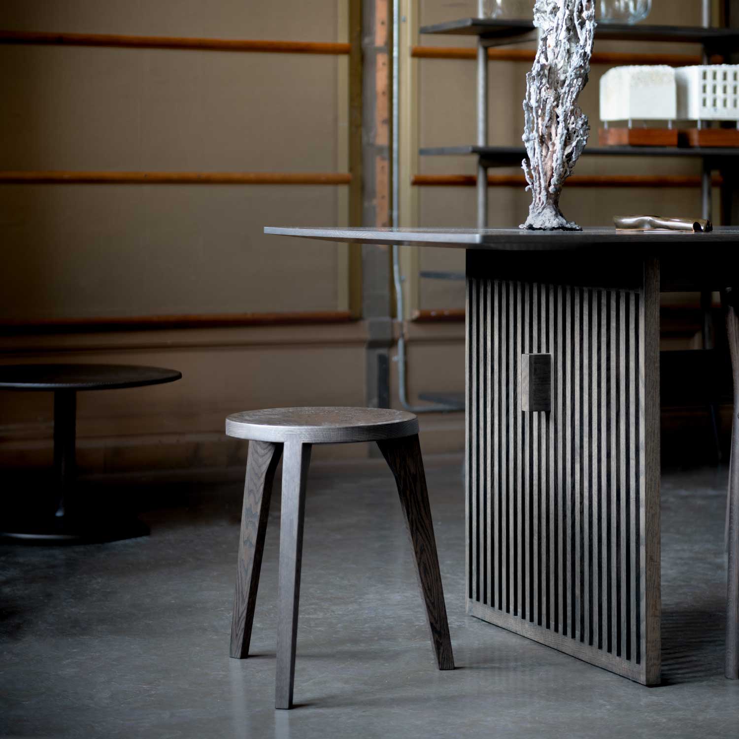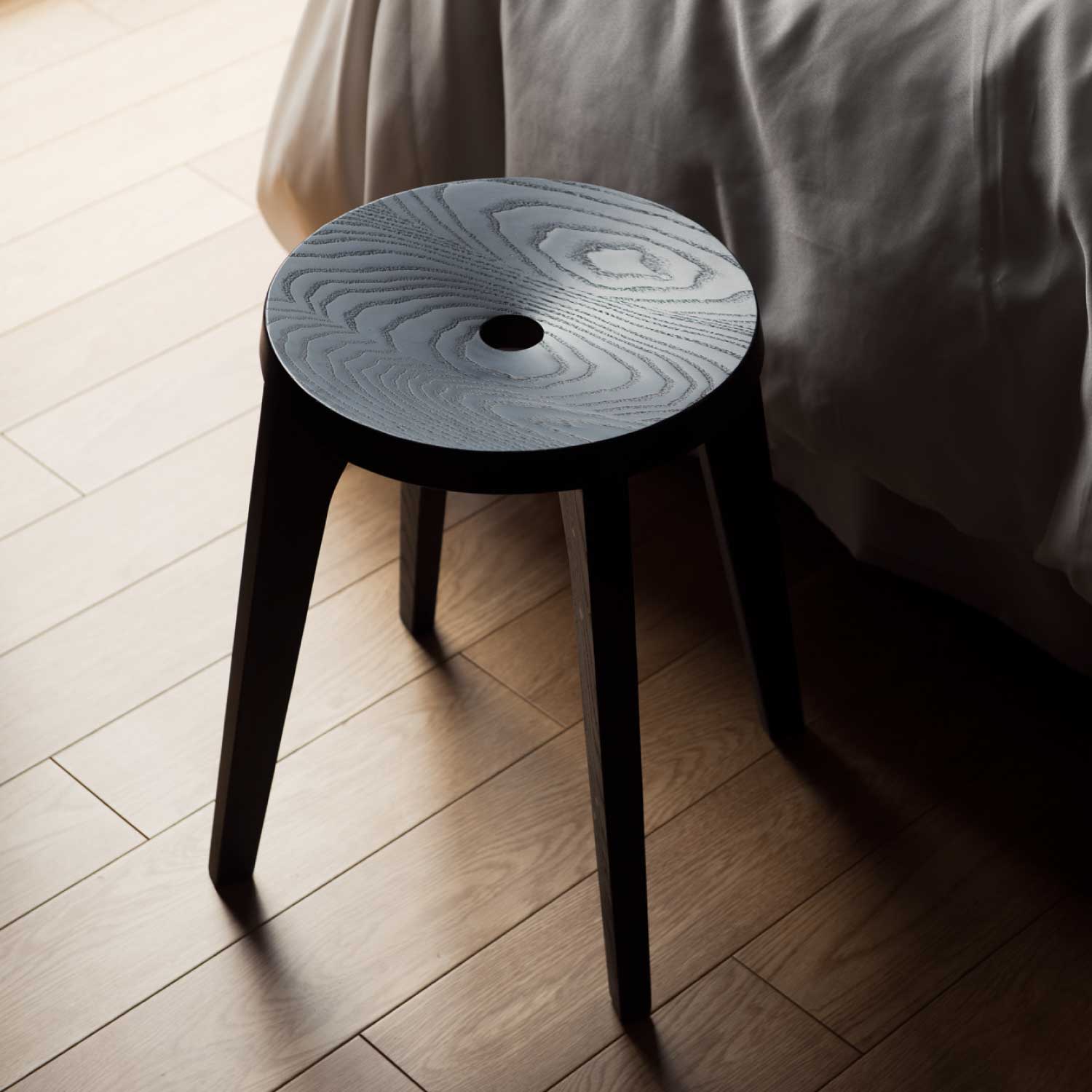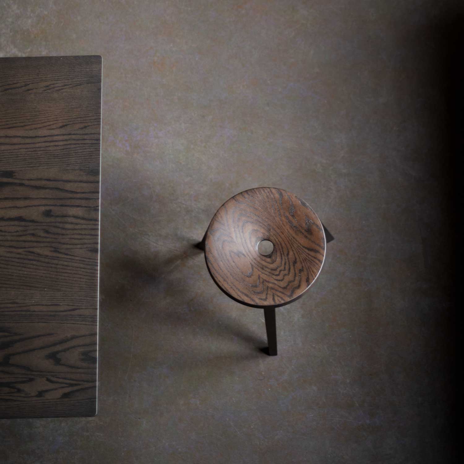非常に珍しいジョイントのやり方であると感じている。新しい継ぎ手を追い求め数千年の歴史の中でも、このダブテイル継ぎ手は私に取って最高の美しさ以外何ものでもない。私なりのやり方でこの美しさを表現したのがこのスツールである。座面の僅かなカーブにより座った時の掛け心地は体感してもらうしかない。