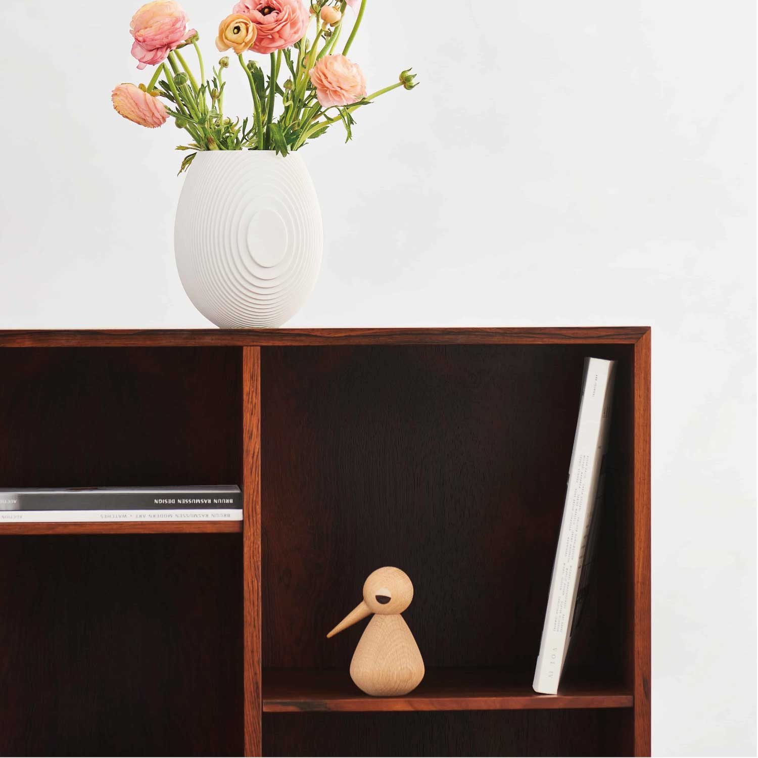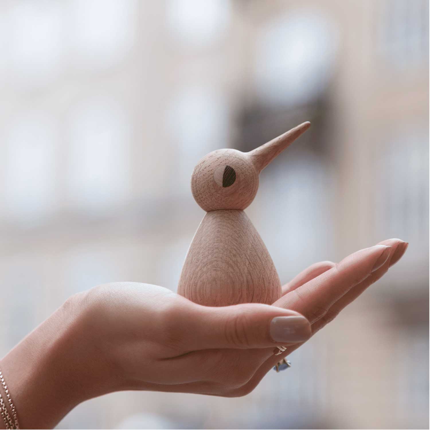 1959年に誕生した、デンマークデザインを象徴する木製オブジェ。頭の向きを変えるだけで表情が生まれ、見る角度によって異なる印象を楽しめます。シンプルな構造ながら、どこか感情を感じさせる佇まいが魅力です。無垢材ならではの自然な風合いと、一点ごとに異なる木目も特徴。サイズ違いで並べることで、空間にさりげないストーリーが生まれます。