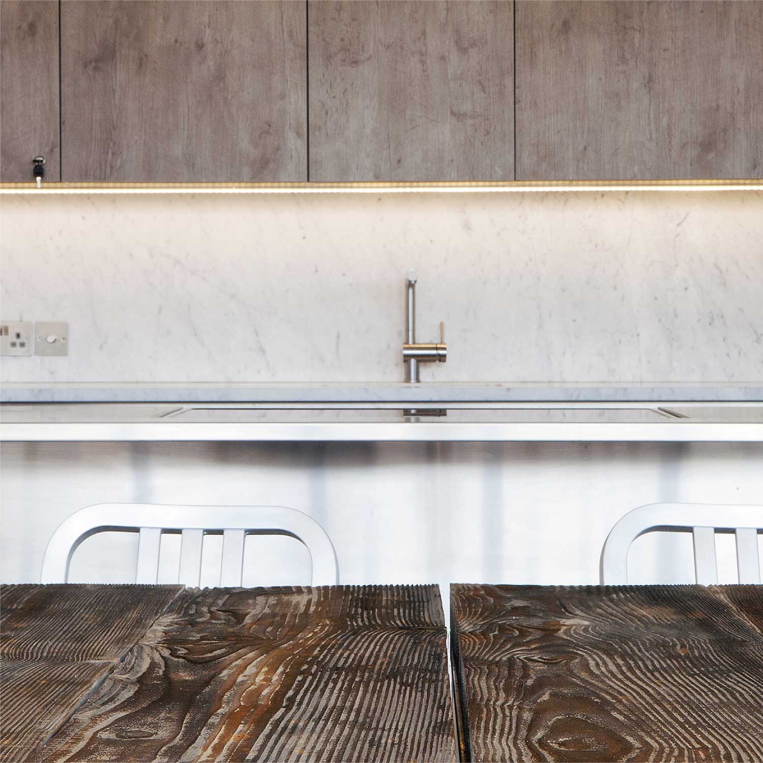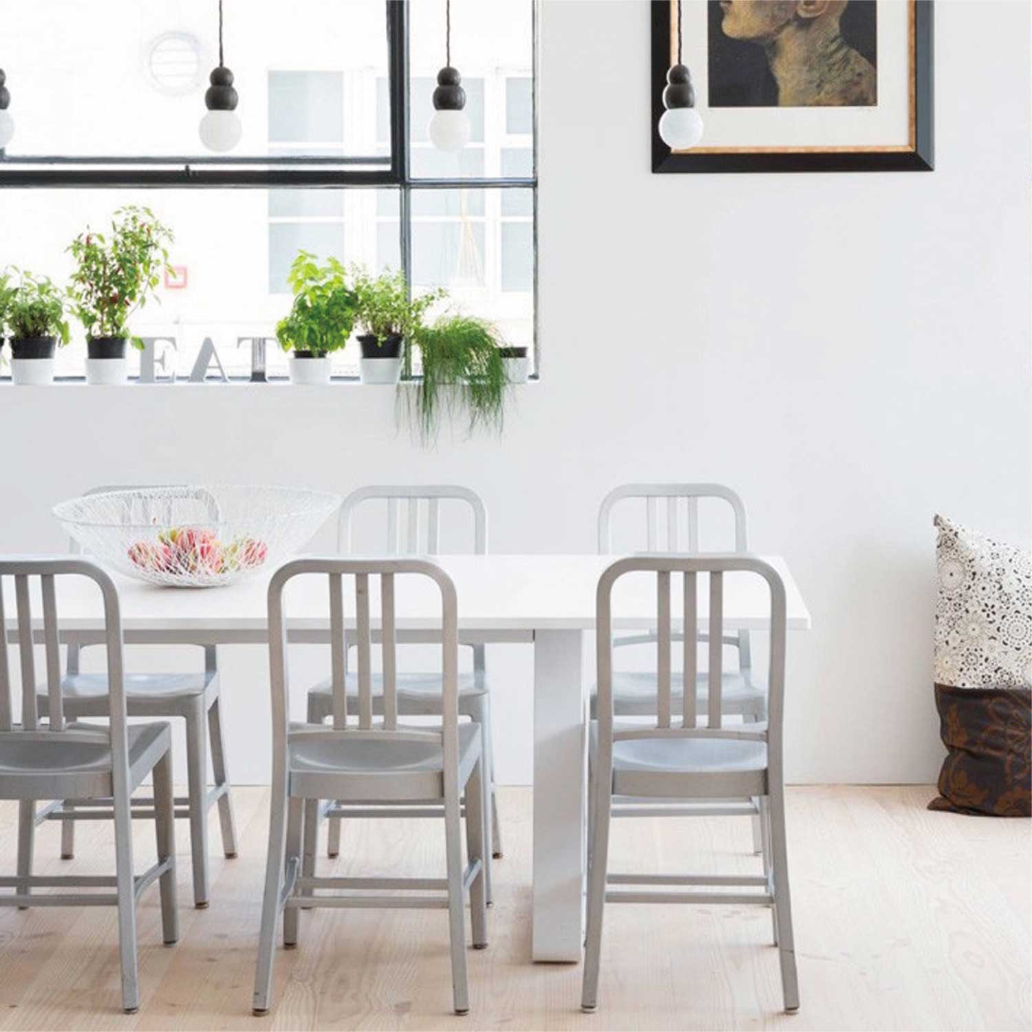 emecoチェアは良質なアルミニウムが原材料。独自の配合によるライトでタフなアルミニウム合金は、軽量、強靭、優れた耐久性を持ち、他に並ぶものを知りません。アルミニウムの持つ素材としてのやわらかさ、ニュートラルな風貌はクラシックからモダンまで、どんなインテリアシーンにもマッチします。軽量でありながらスチールの3倍もの強度を持つemecoエメコチェア。その品質と信頼は、優れた職人技による独自の製法と工程によって支えられています。シンプルな機能美のNAVY CHAIRであっても、77もの工程を得て初めて誕生するものです。この独自の製法は77STEPSと呼ばれ、基本工程として、他のemecoエメコチェアにも踏襲されています。