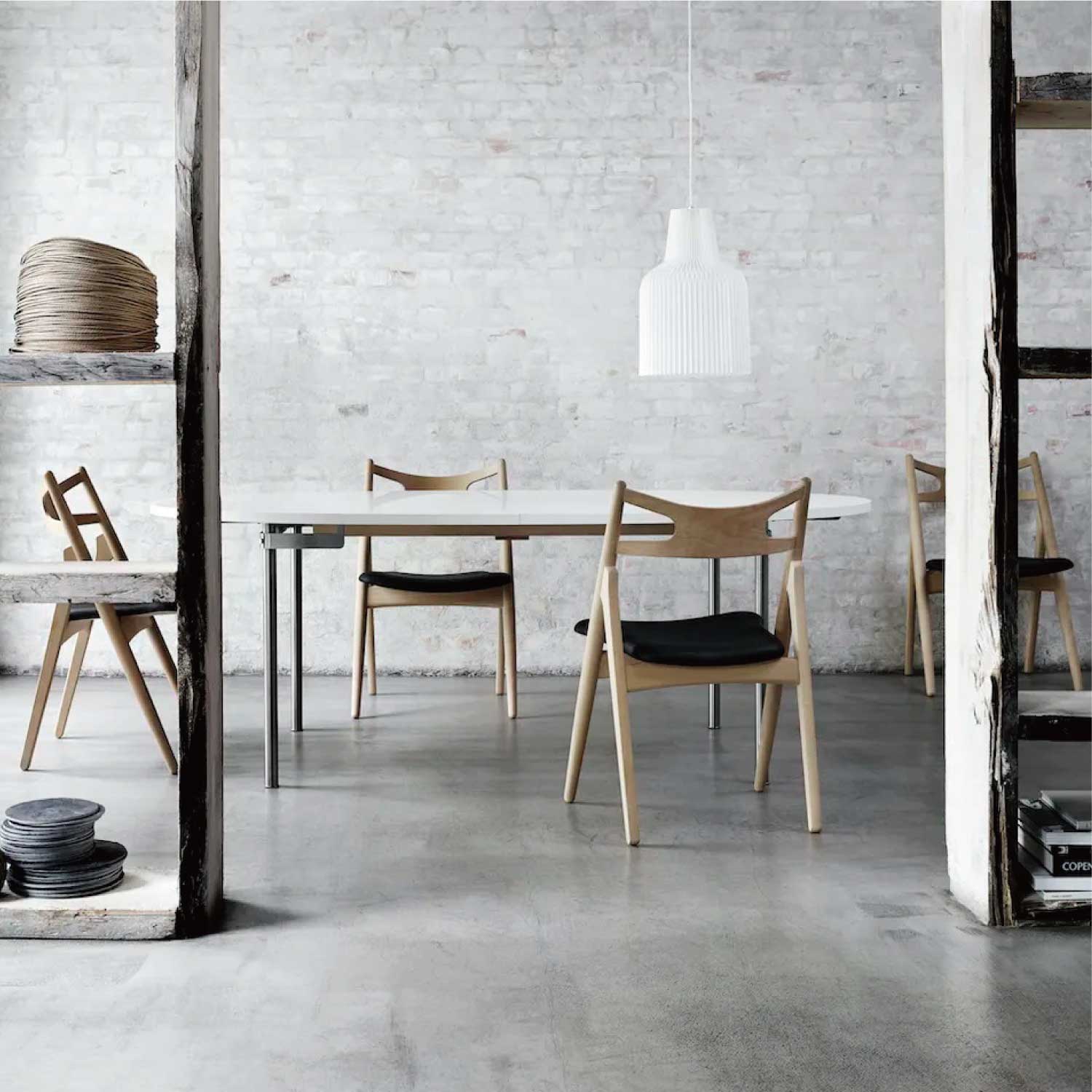 CH29P ソーバックチェアは、バリエーション豊富な張地で個性的にカスタマイズすることが可能。張地は皮革、ファブリックからお選び頂けます。座面とフレームにオーク材、ウォルナット材を用いたバージョンがCH29Tとなります。