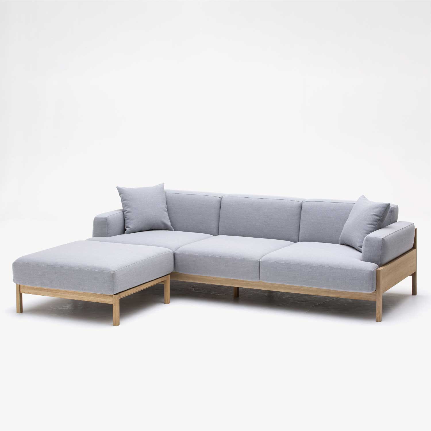 テーブルと同じ構造をソファにも活用し、彫刻的な美しさとリラックスした雰囲気をソファに持たせています。