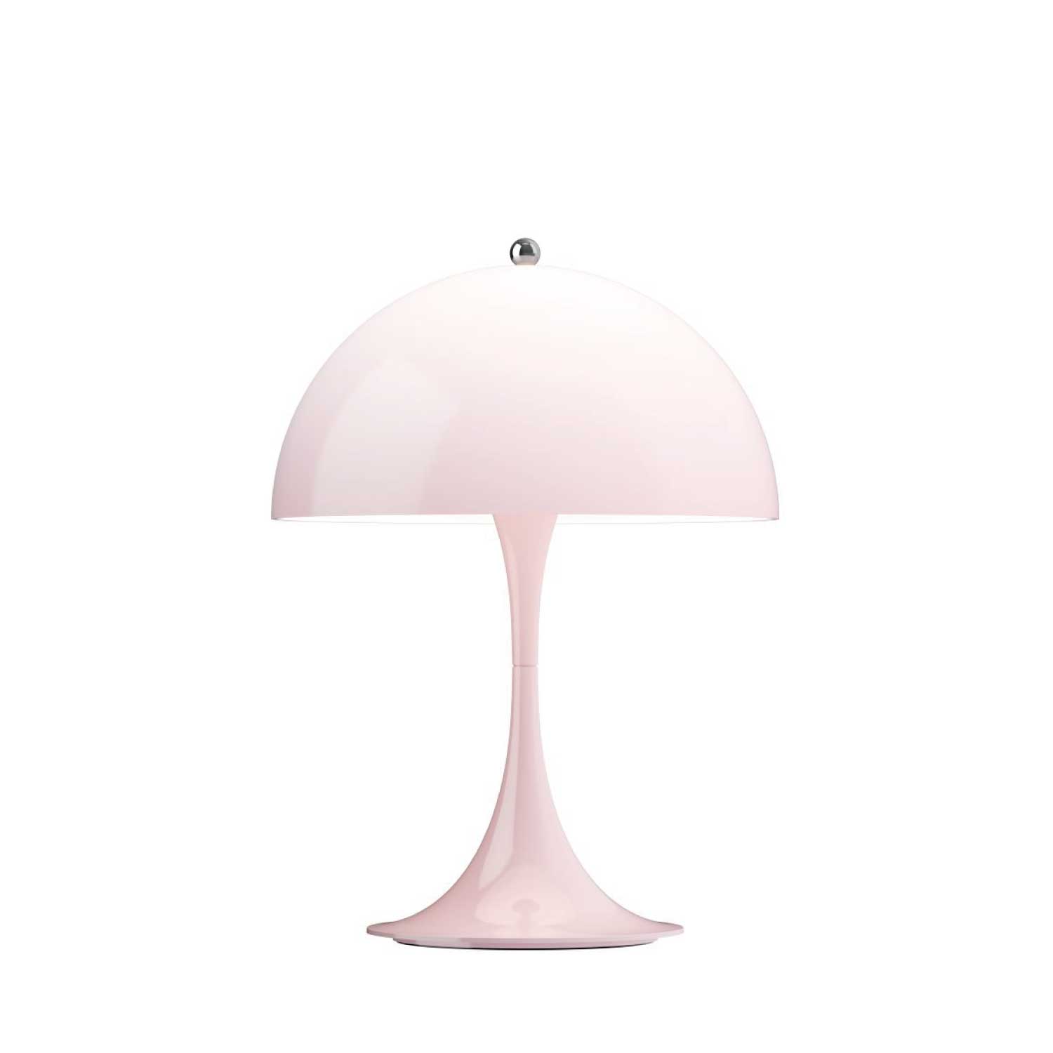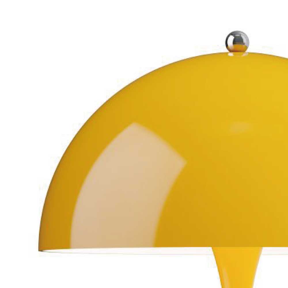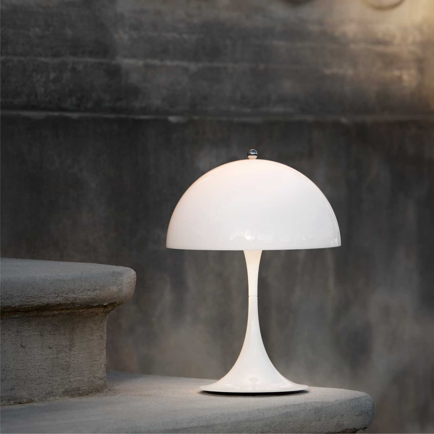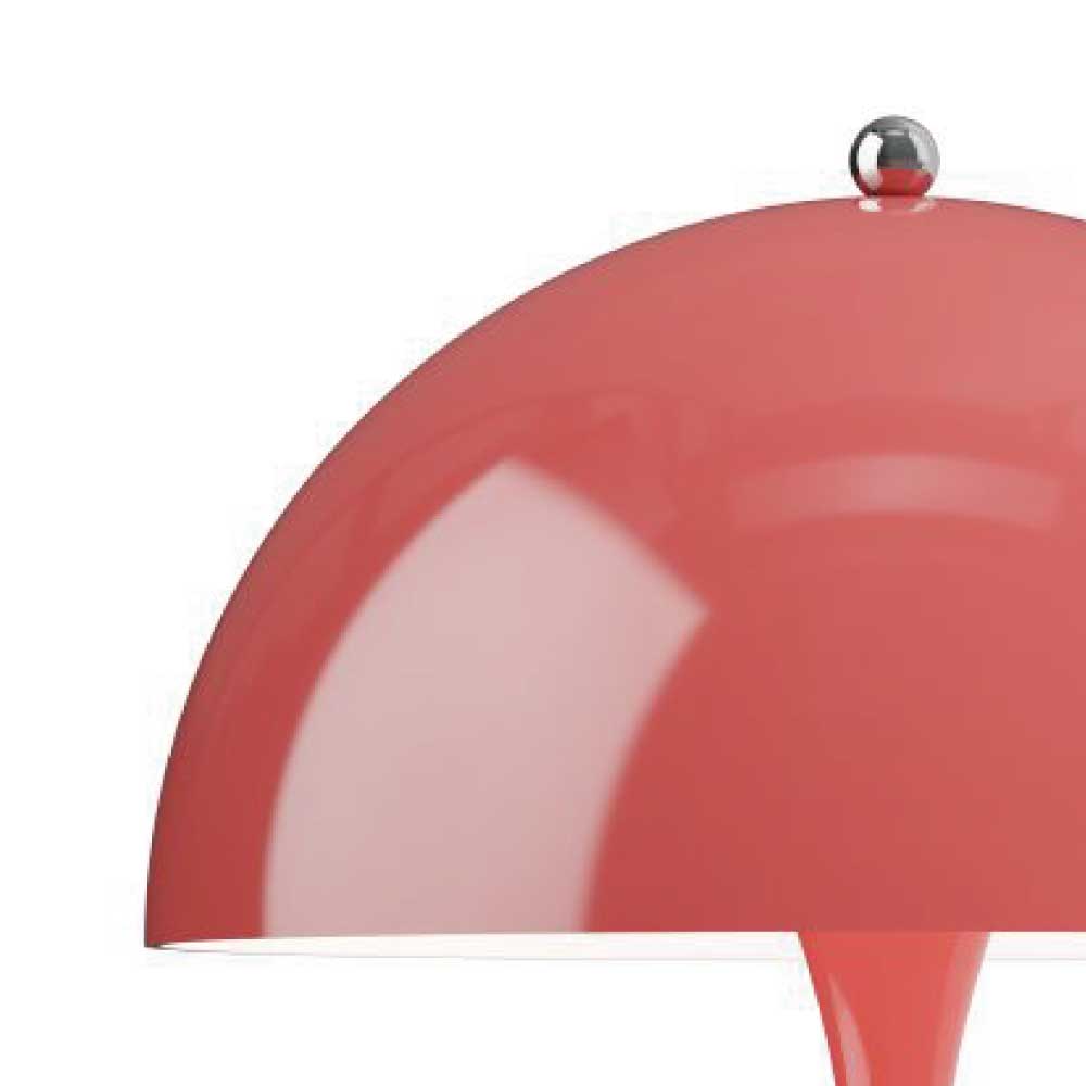 ヴァーナー・パントンは、 1971年にルイスポールセンとの共同開発により<パンテラ>を発表しました。<パンテラ>は、パントンの最も重要なデザイン・アイコンの一つとして知られ、有機的なフォルムと鮮やかなカラーヴァリエーションが典型的なパントン・デザインです。シェード内側から下側への反射やトランペット型ステムからの反射が織りなす効果により、アクリル製のシェードから心地よい光を拡散します。<パンテラ 250 ポータブル>は、直径250 mmのシェードをもつ充電式のポータブルランプです。