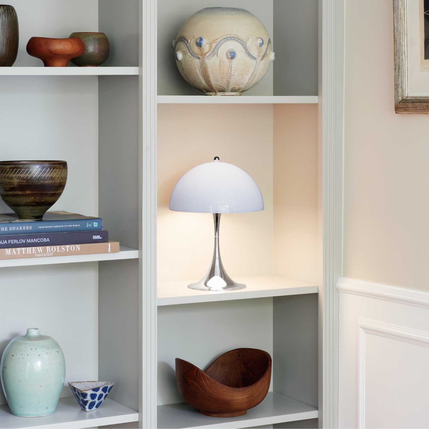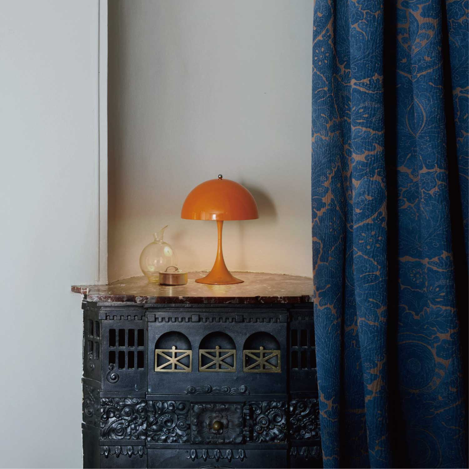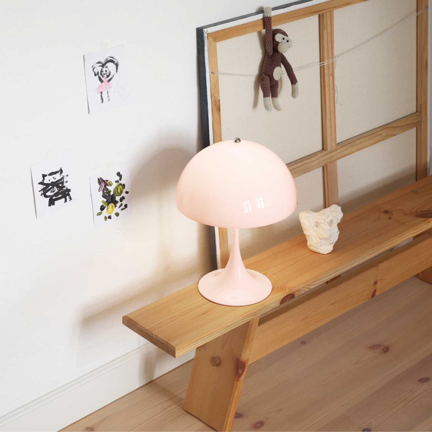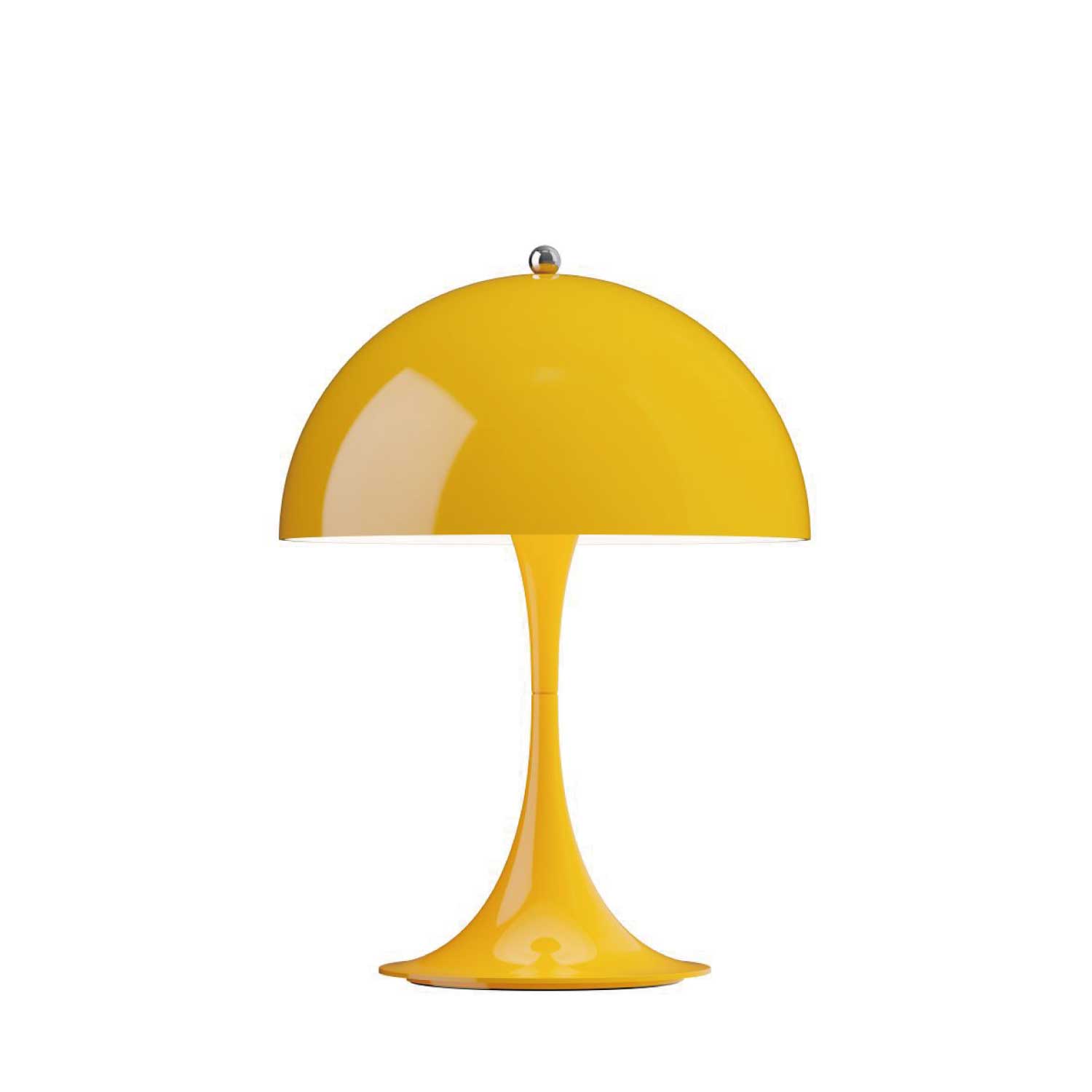 ヴァーナー・パントンは、 1971年にルイスポールセンとの共同開発により<パンテラ>を発表しました。<パンテラ>は、パントンの最も重要なデザイン・アイコンの一つとして知られ、有機的なフォルムと鮮やかなカラーヴァリエーションが典型的なパントン・デザインです。シェード内側から下側への反射やトランペット型ステムからの反射が織りなす効果により、アクリル製のシェードから心地よい光を拡散します。<パンテラ 250 ポータブル>は、直径250 mmのシェードをもつ充電式のポータブルランプです。