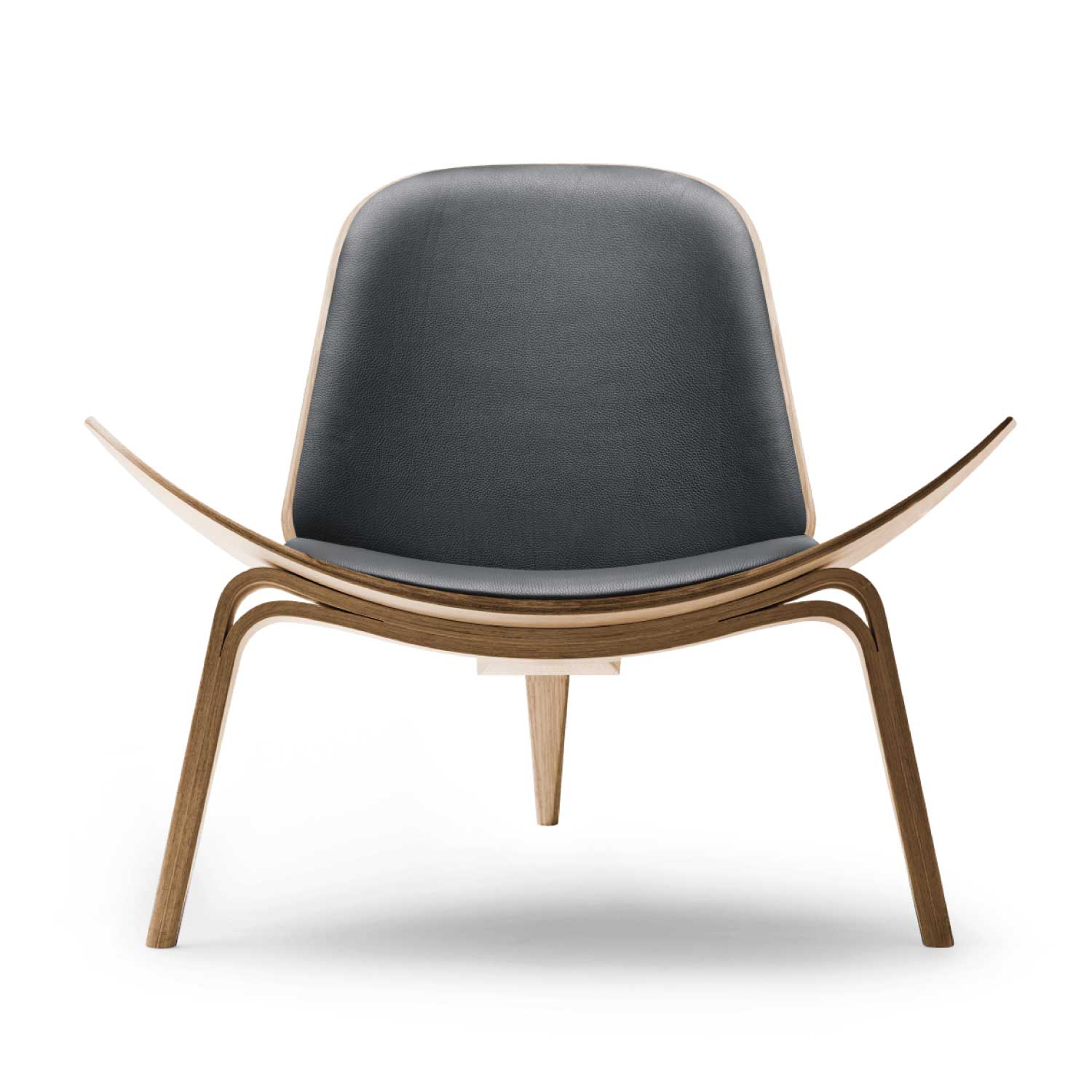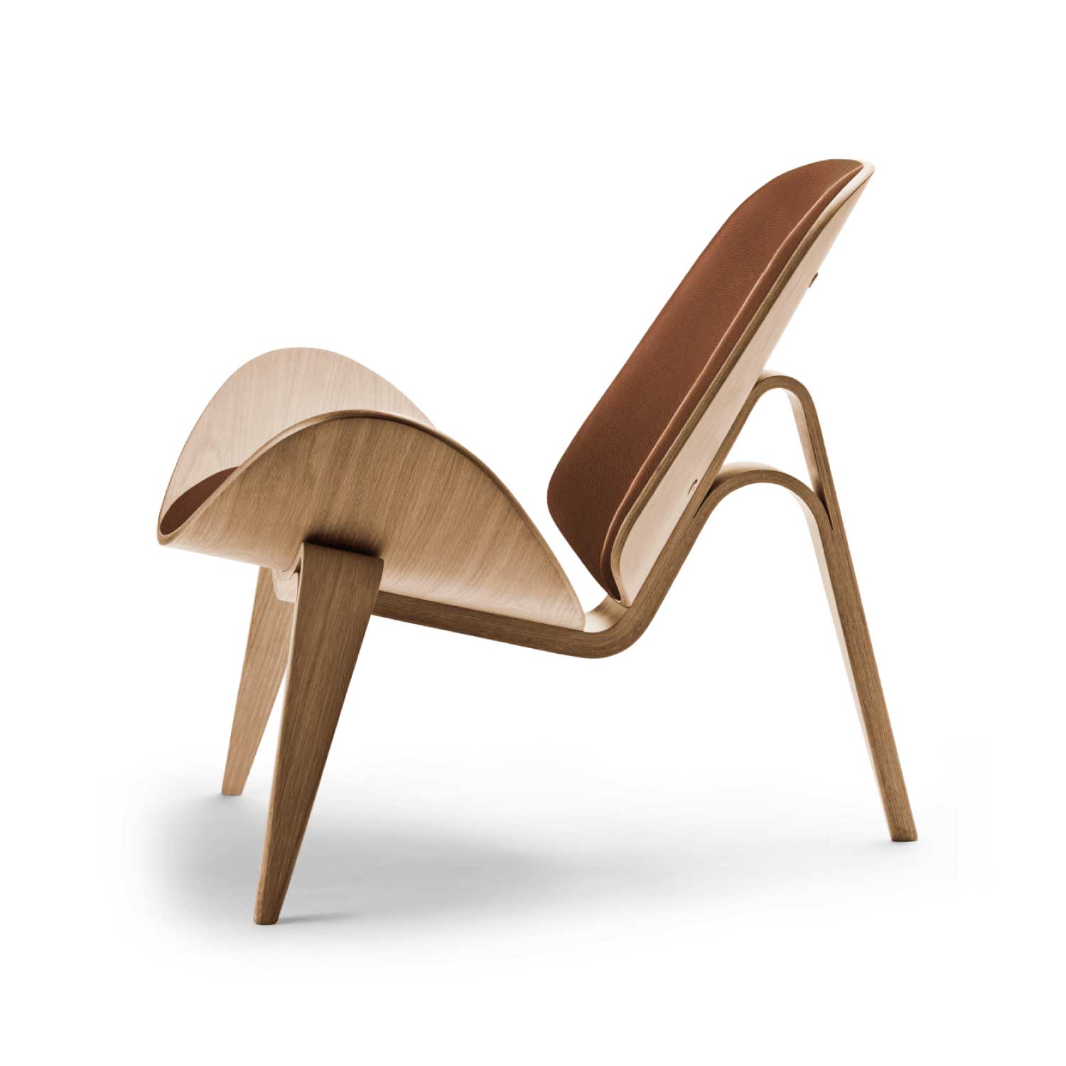 CH07 シェルチェアは、ウェグナーが信条とする、どこから見ても美しく、表裏があってはならという考えを見事に体現しています。