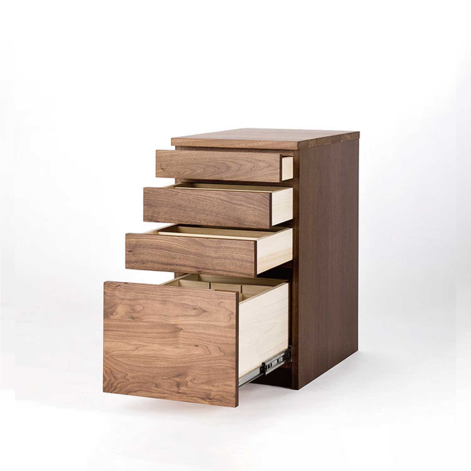 リーヴスのデスクと同じ高さ、奥行きに設定されたデスクサイドドロワー。