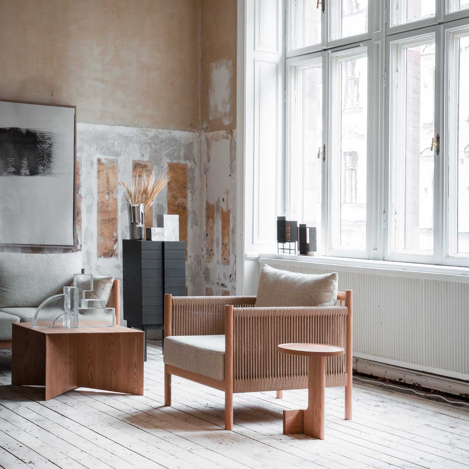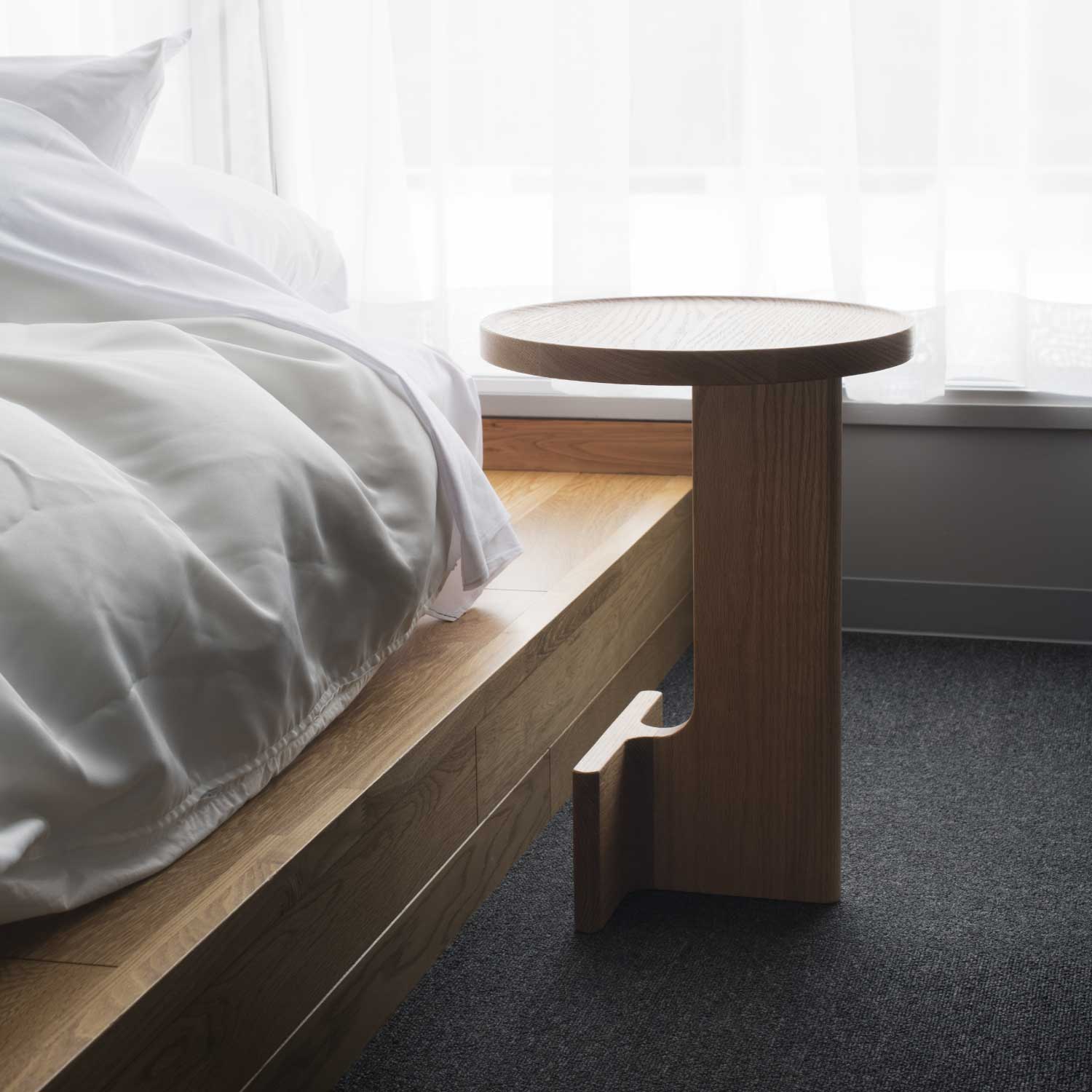 ビームテーブルからインスピレーションを得て生み出された、このサイドテーブル。テーブルトップを支えるビーム、フットボードのカットラインには、ARIAKEの職人技が現れています。