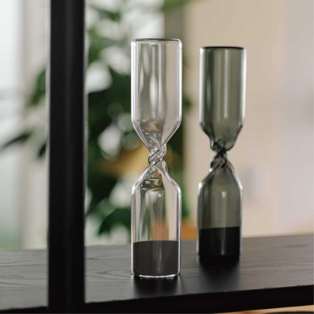 静かに流れる砂が、時間の尊さを感じさせてくれる砂時計型のオブジェ。名前の通り、流れゆく一瞬が“永遠のように美しい”ことを教えてくれます。ガラスの中の光や影の移ろいも魅力的で、リビングやデスクに置くだけで心が落ち着く空間に。慌ただしい日常を過ごす方や、自分の時間を大切にしたい方に贈りたい逸品です。