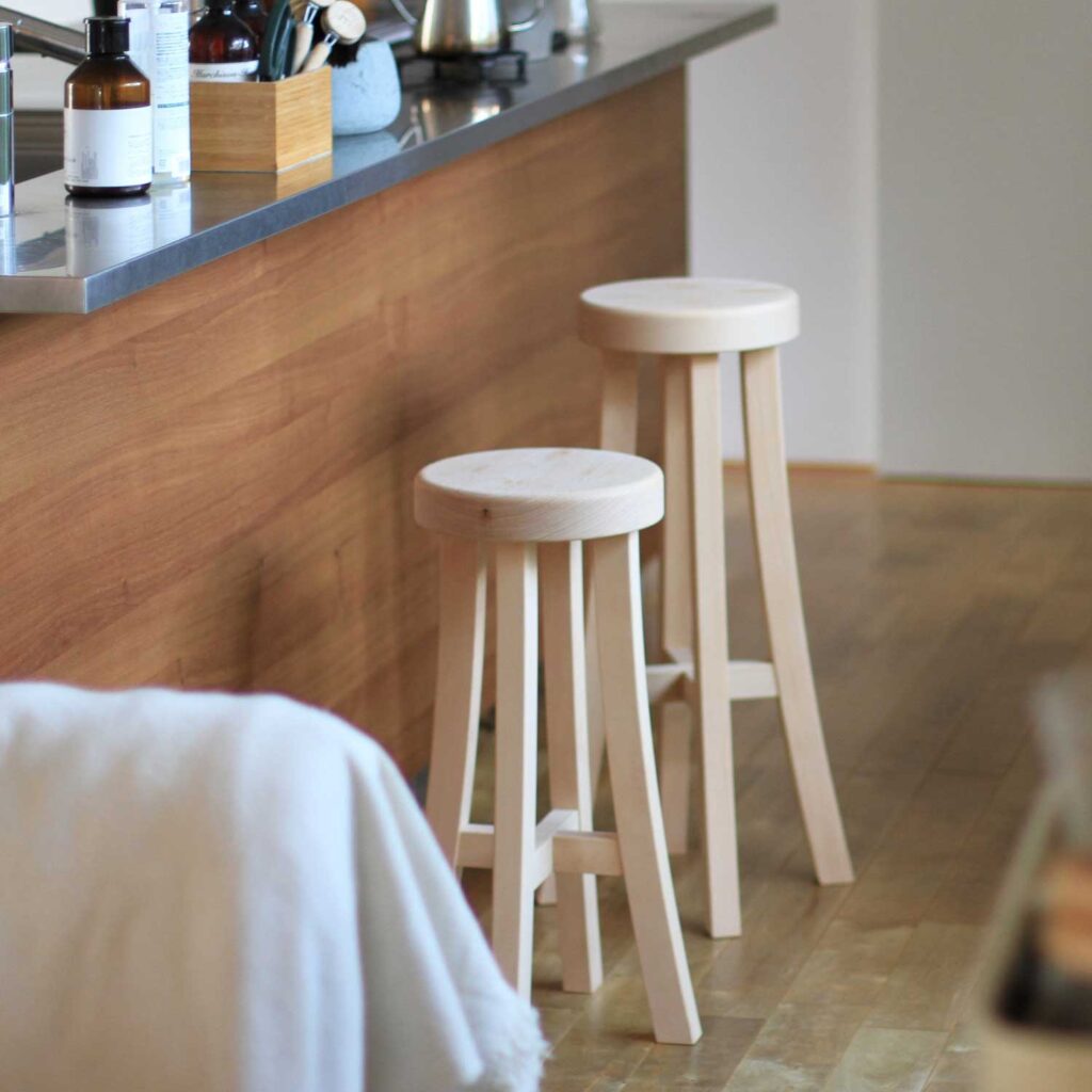 シンプルな佇まいの中に、職人の技と木の温もりがぎゅっと詰まった一脚です。無垢材ならではの滑らかな触り心地、丁寧に削り出された曲線、座った瞬間に感じる安心感。見た目の軽やかさからは想像できないほどしっかりとした安定感があり、“ちょっと腰掛けたい”という日常の動作を心地よい時間に変えてくれます。キッチンでの作業用スツールに、ドレッサー前の椅子に、来客時のサブチェアにも。すっと手に取りやすいサイズ感で、家中どこへでも連れていきたくなる使い勝手のよさが魅力です。素材の美しさと長く使える家具を選びたい方、シンプルながら存在感のある一脚を贈りたい方にぴったりのスツールです。