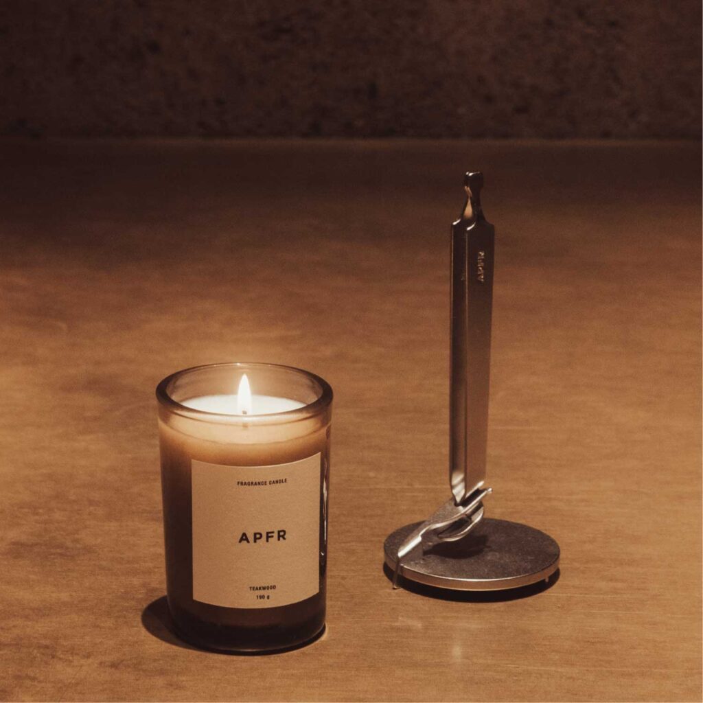 APFRのフレグランスキャンドルは、香りも灯りも、主張しすぎないバランス。 家具や素材の存在を邪魔することなく、空間に静かな奥行きを添えてくれます。