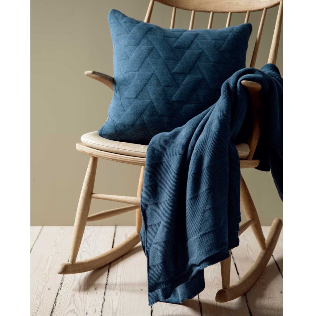 ソファに無造作に掛けたり、スツールの上に軽く置いたり。 きちんと整えなくても様になるのは、デザインと素材のバランスが取れているから。身体を包むあたたかさと、視線に伝わるやさしさ。布を一枚重ねるだけで、くつろぎの質は確実に変わります。