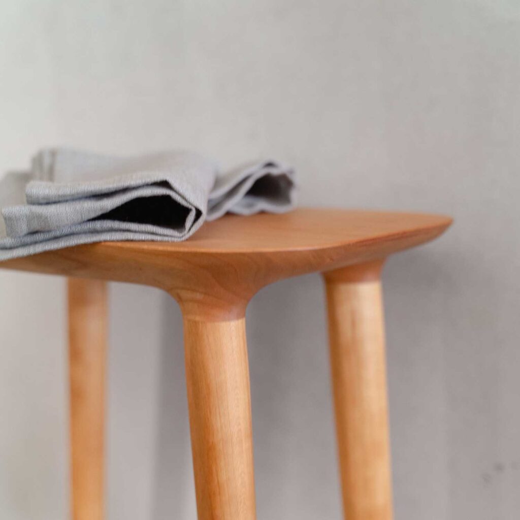 無垢材のスツールは、空間に置くだけで、部屋の印象をやわらげてくれます。 塗装で整えすぎていない木の表情や、自然な木目の揺らぎが、視線にやさしいリズムを生み出します。
