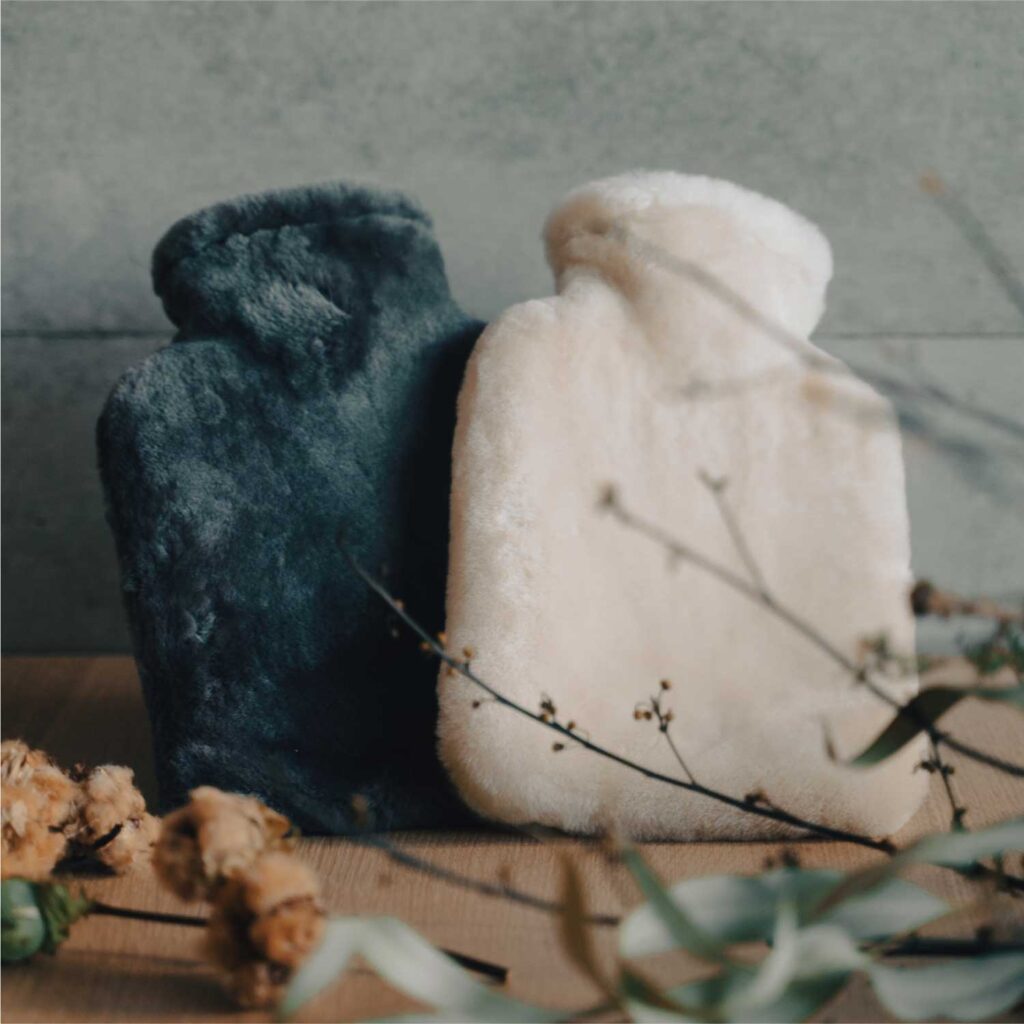 同じシープスキンを使った湯たんぽは、冷えやすい足元や手元に、より直接的なあたたかさを届けてくれます。 使うたびに、「暖める」という行為が少し丁寧になるのも魅力です。