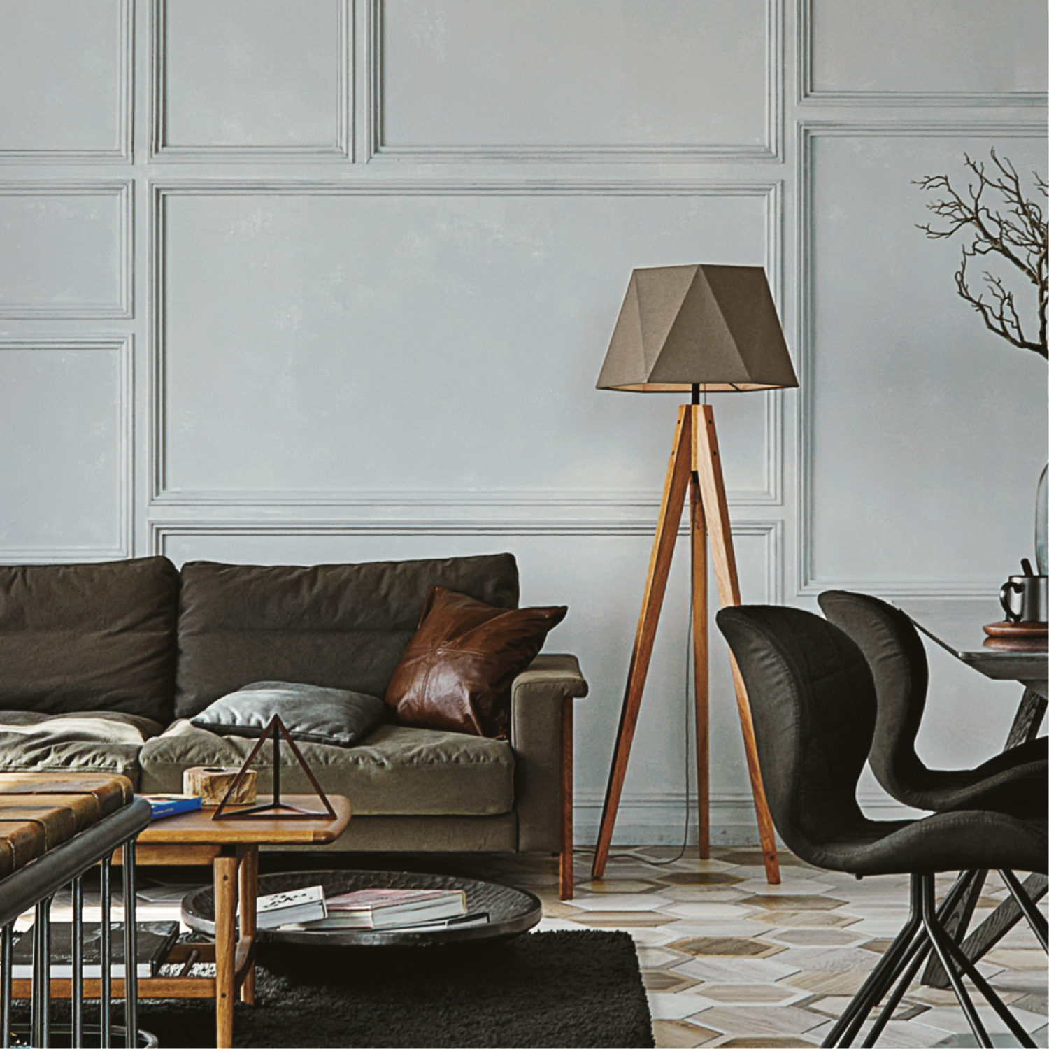 名前の通りコーヒーの香りを連想させる「Espresso」シリーズのフロアランプです。シェードはヘキサゴン(六角形)タイプデザインで特徴的なシルエットです。