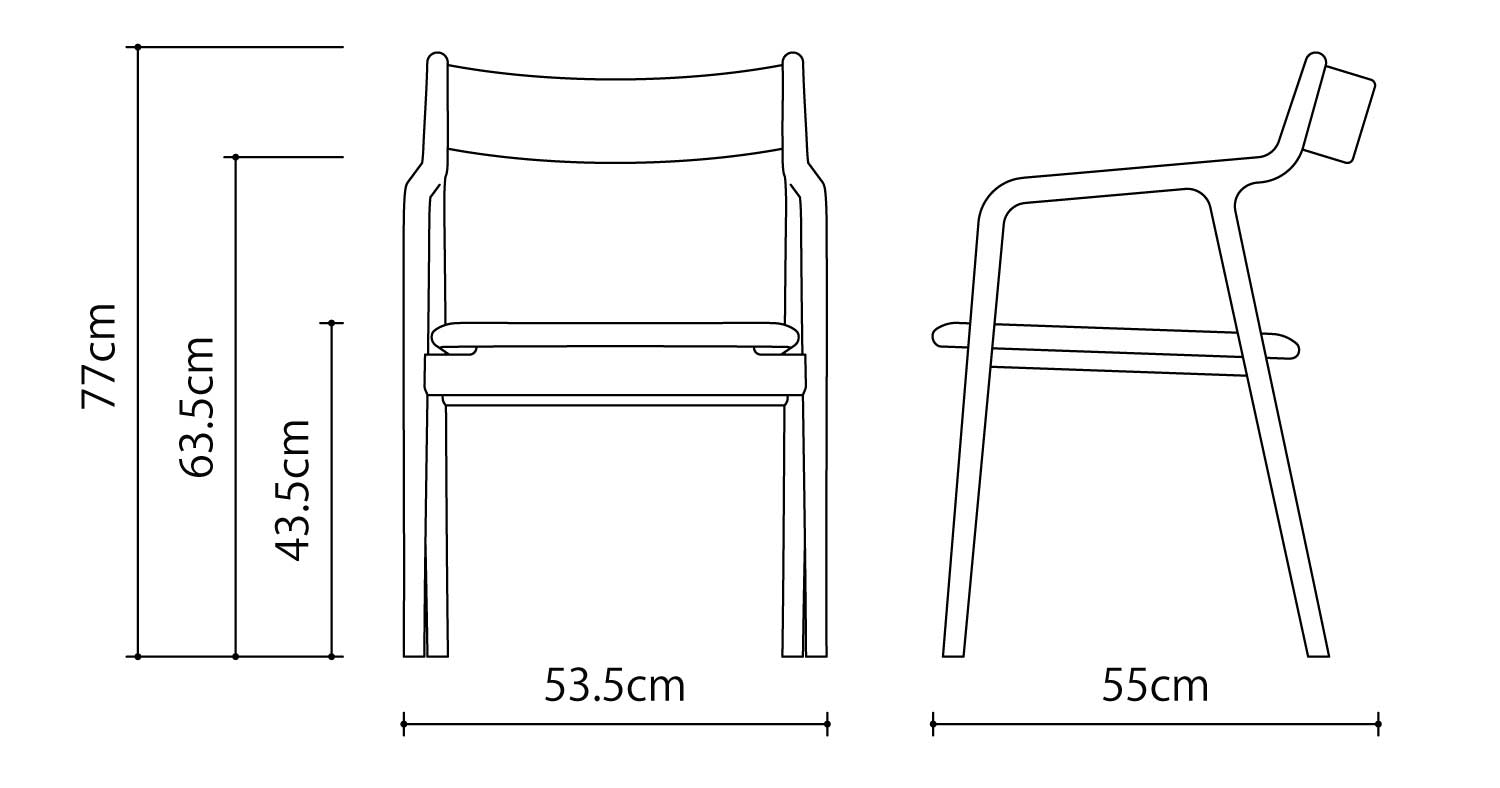 | サイズ | W53.5 × D55 × H77cm | SH43.5cm | AH61〜63.5cm |