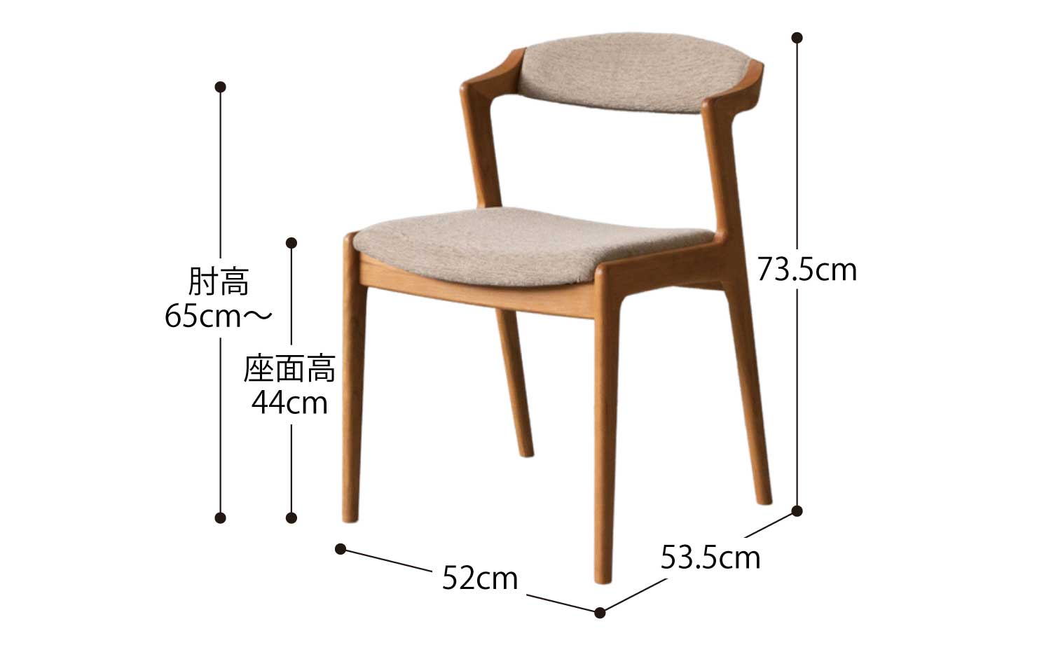 サイズ | W52 × D53.5 × H73.5cm | SH44 | AH65cm~ |
