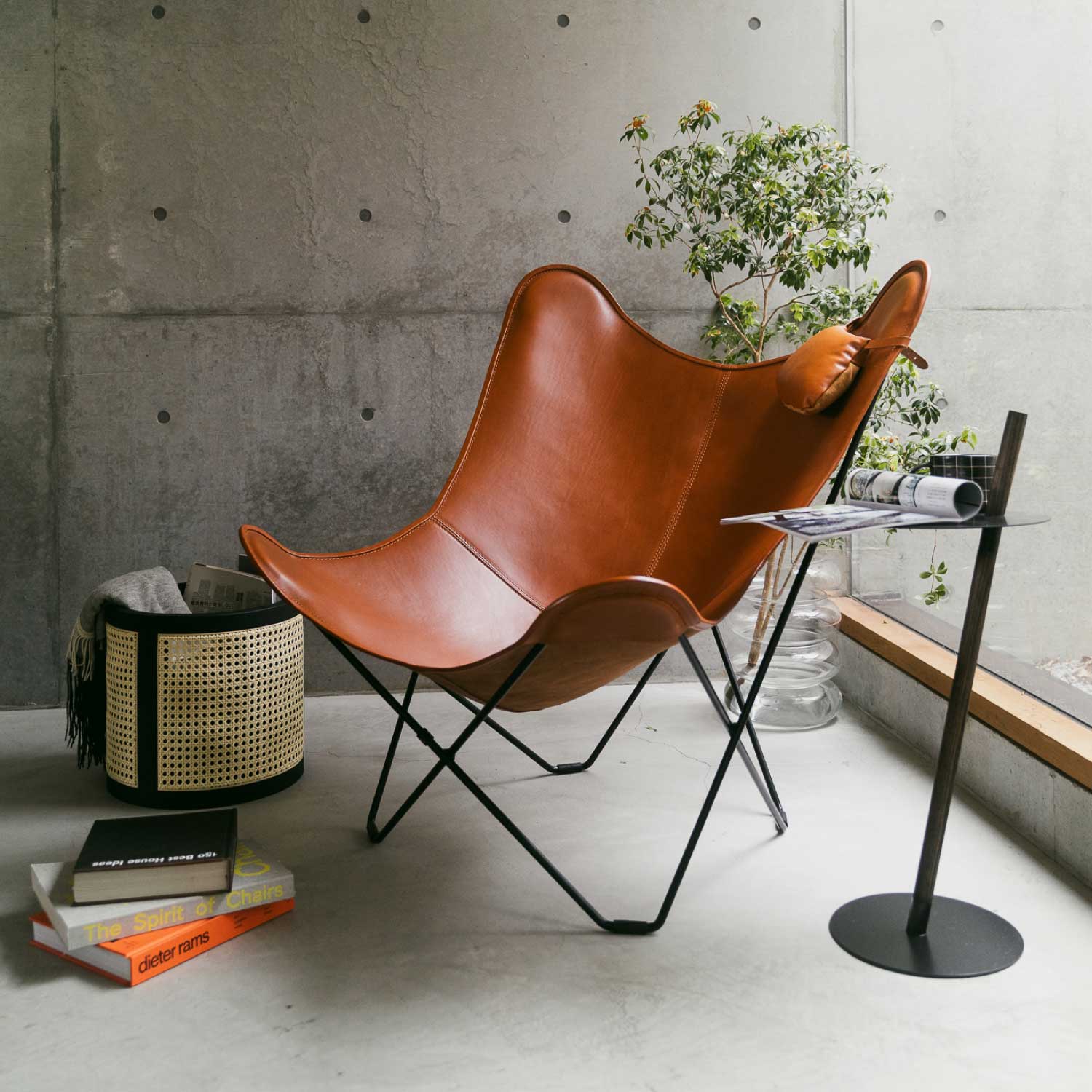 3人のアルゼンチン人デザイナーによってデザインされ、それぞれの頭文字をとってBKFチェアと名づけられました。イギリスのエンジニアのヨゼフ・フェンビィが1855年にデザインした椅子にインスピレーションを得て、1938年に誕生しました。そして1950年代から60年代にかけて、若者など新しい家具を求める人々によって支持されるようになりました。フレームは中身が詰まったスチールロッドで、見た目の細さからは想像できないほど耐久性に優れています。レザーは放牧で育てられた牛の革を使用しており、素材の上質さが際立つ、飾らない雰囲気が現代の感性にとてもマッチしています。