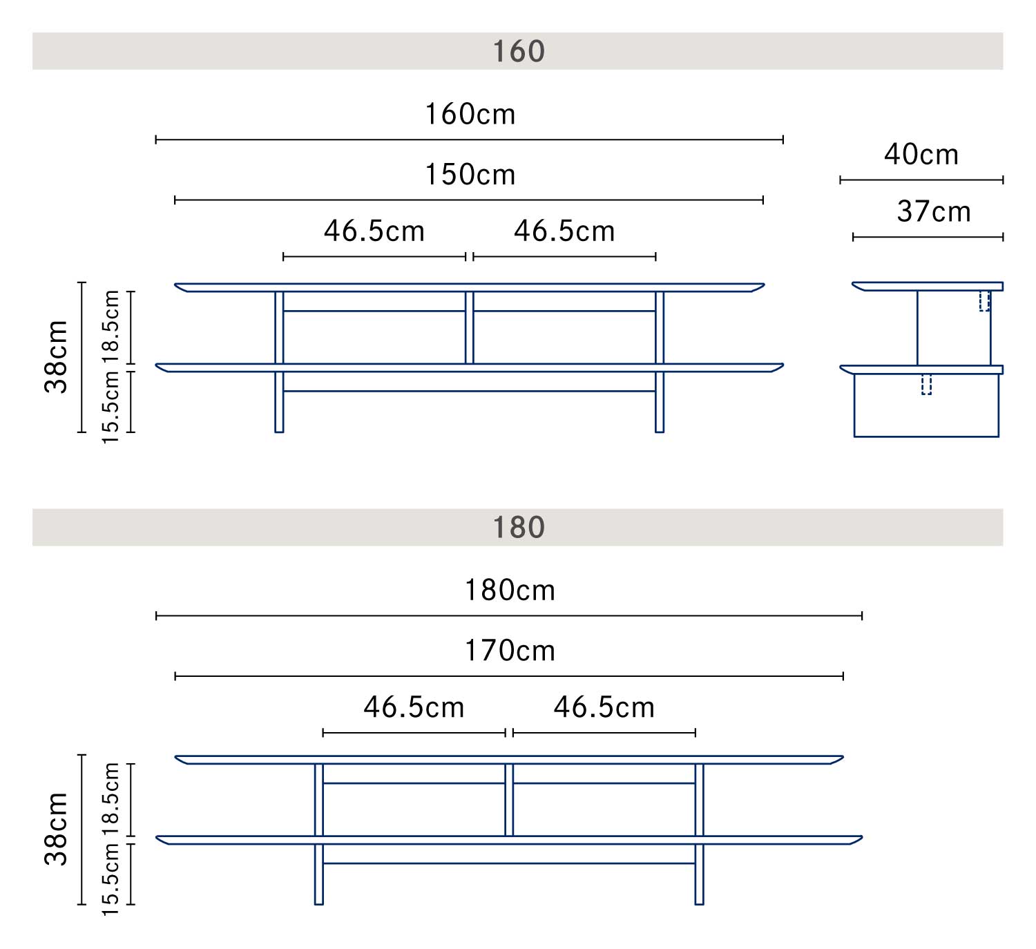 | サイズ | [160cm]W160 × D40 × H38cm [180cm]W180 × D40 × H38cm |