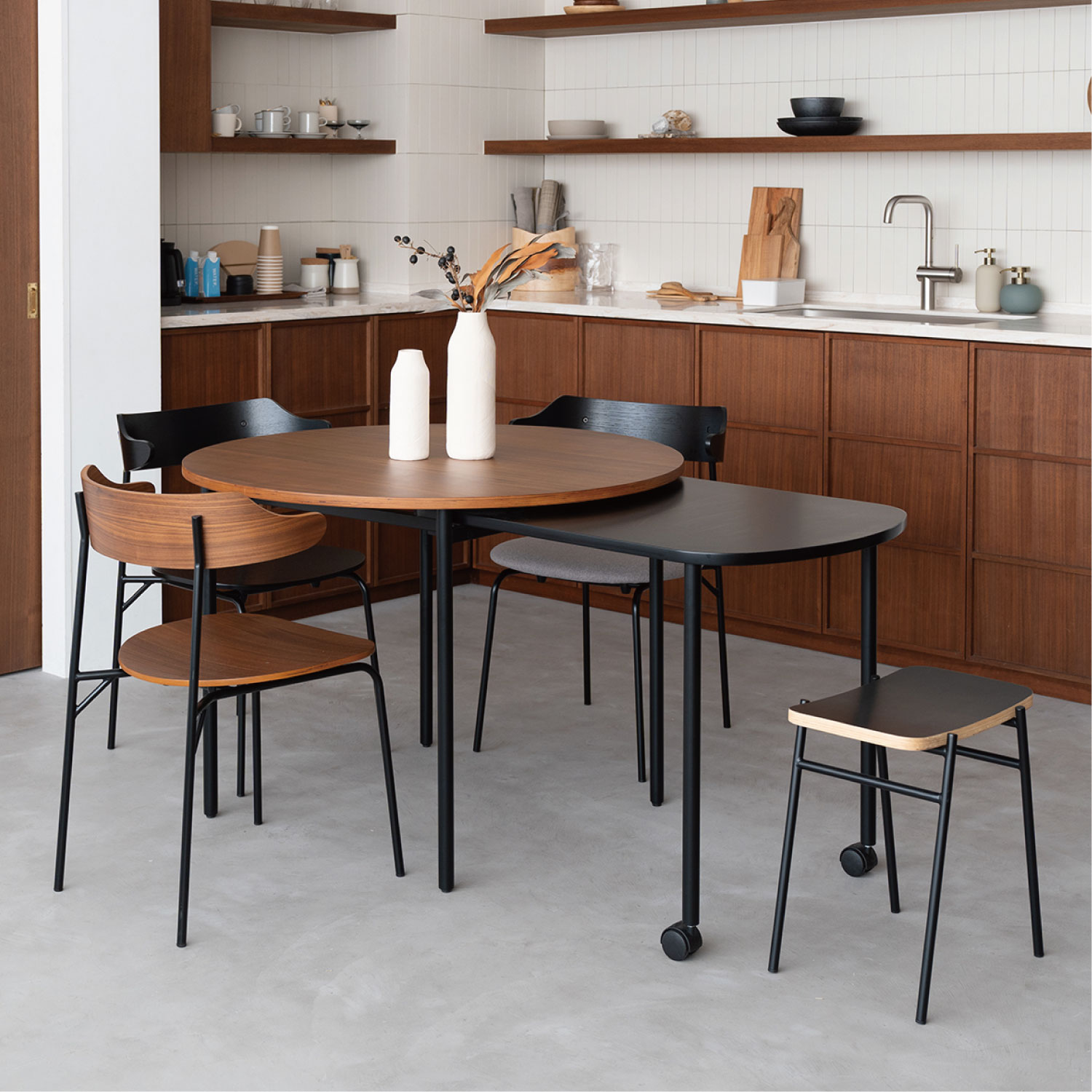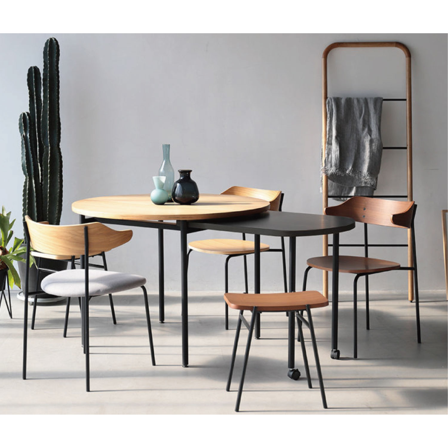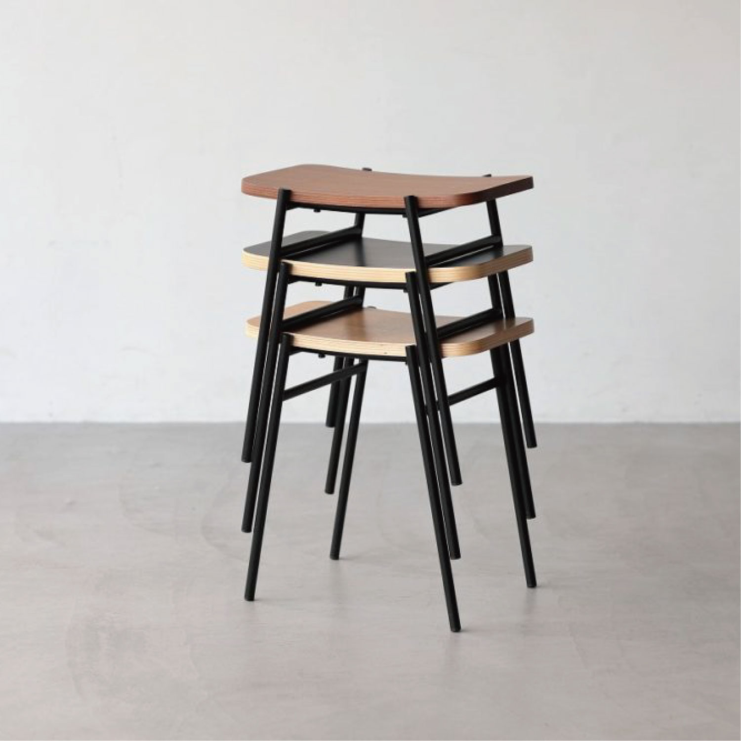 スタッキングしてコンパクトに収納ができる、便利なスツール。重ねたときの姿も美しいようにデザインされています。ダイニングだけでなくリビングや寝室などにも気軽におけるアイテムです。