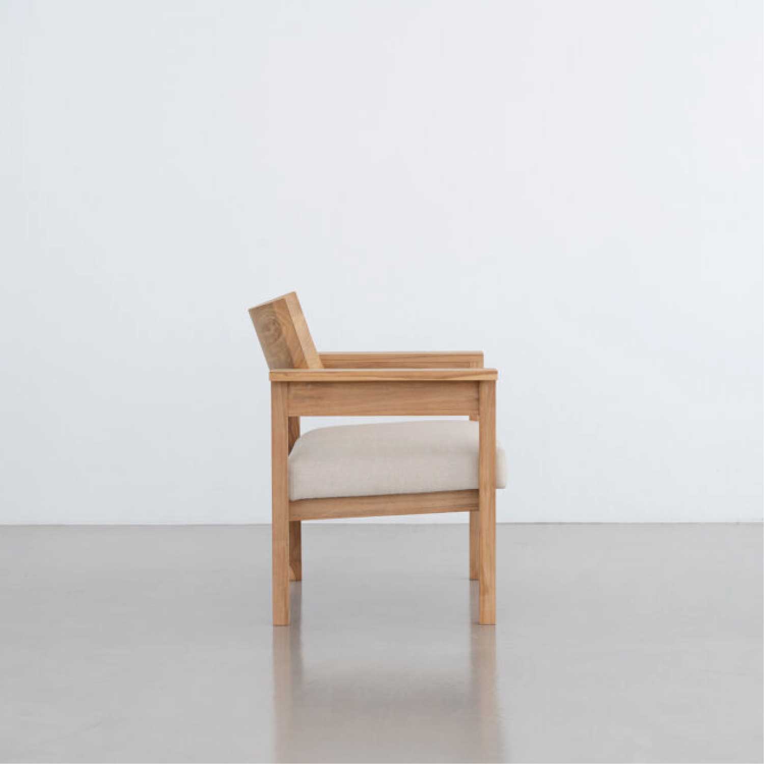シンプルで、木の素材感をダイレクトに感じられるデザインのラウンジチェア。整然とした佇まいが、落ち着いた雰囲気を醸し出し、様々な空間に溶け込みます。硬すぎず、程よい柔らかさの座り心地です。