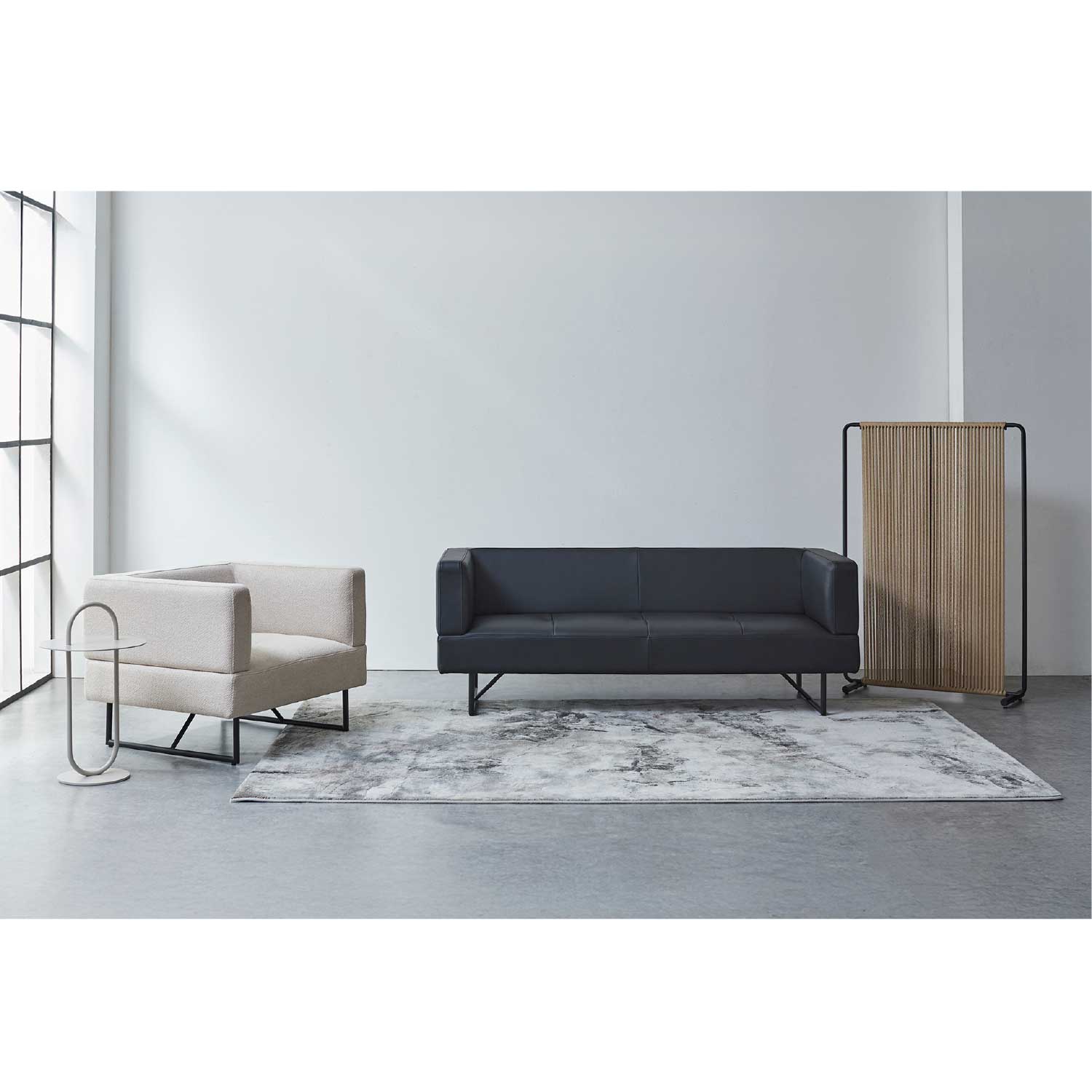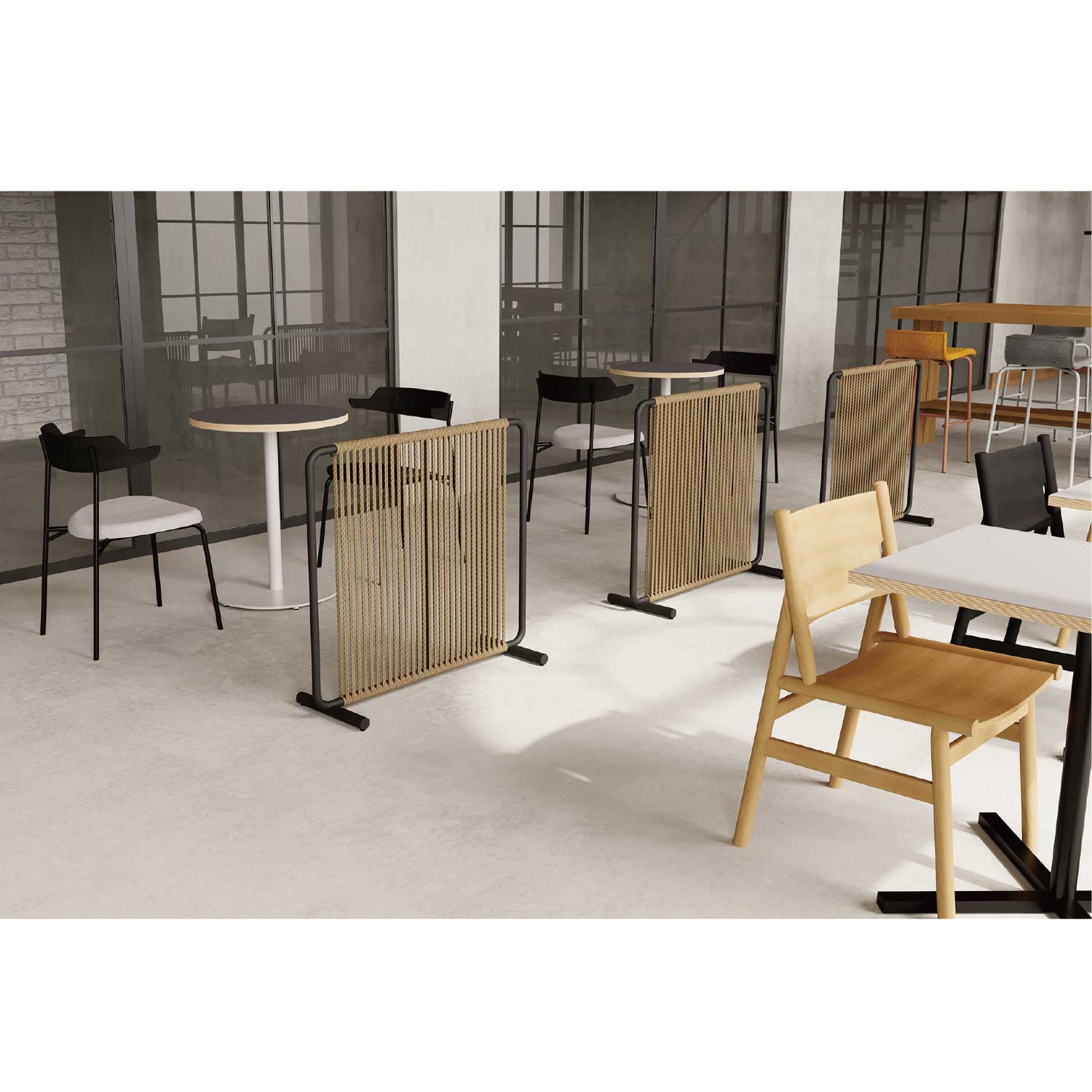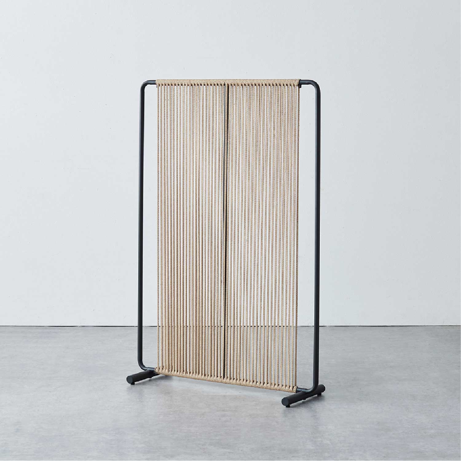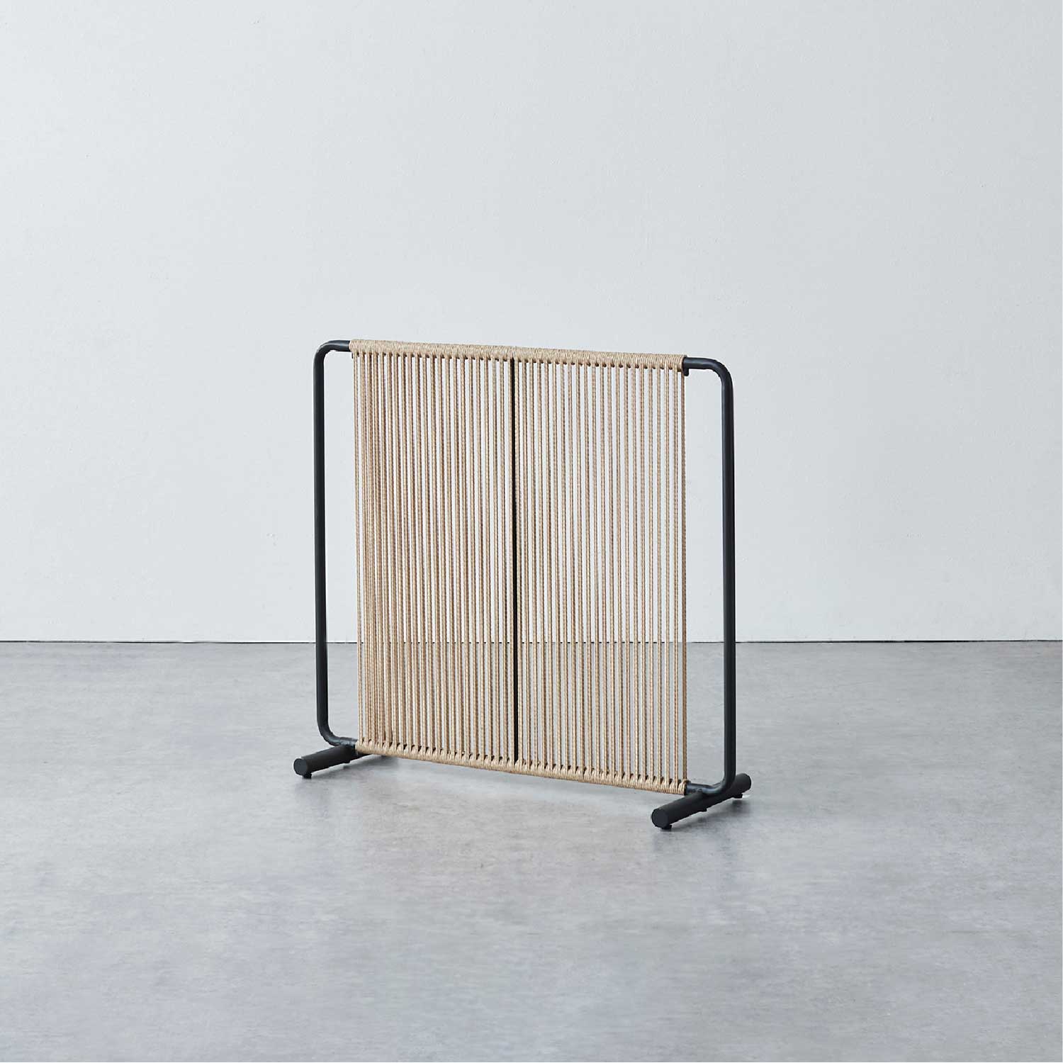 スチールフレームにペーパーコードを編み込んだ、軽やかで上質なデザインです。視界を完全には遮らず、ほどよい抜け感があるため、空間を仕切りながらも圧迫感がありません。