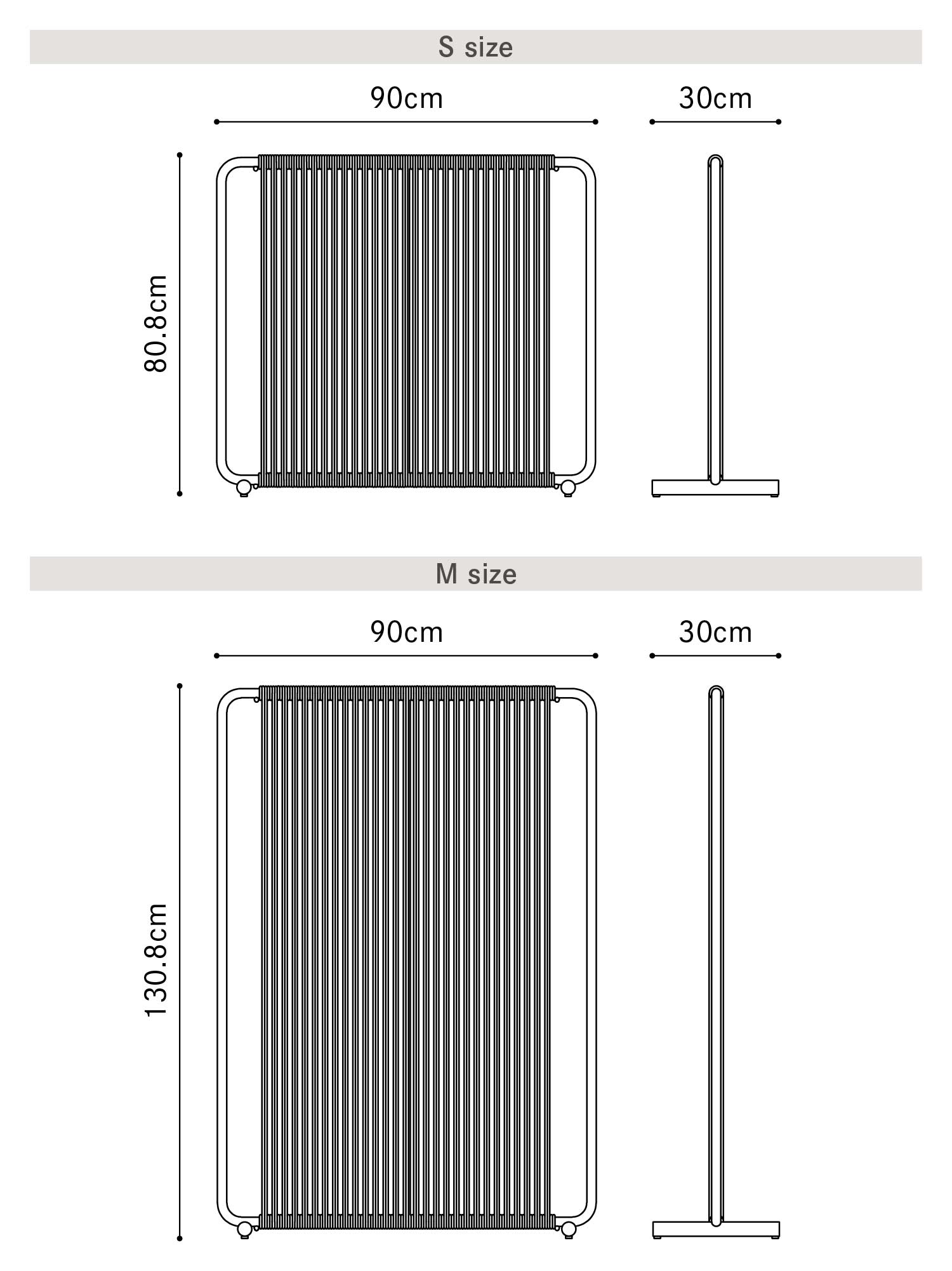 サイズ | S サイズ:W90 × D30 × H80.8cm M サイズ:W90 × D30 × H130.8cm |