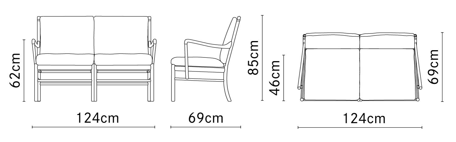 オーレ・ヴァンシャーがデザインしたOW149-2コロニアルソファは、クラシックな形状を現代の機能性に合わせた独創的な解釈です。 柔軟な形状とスリムな寸法で、ソファのスタイルは 18 世紀のイギリスの家具デザインへのオーレ・ヴァンシャーの関心を反映しています。