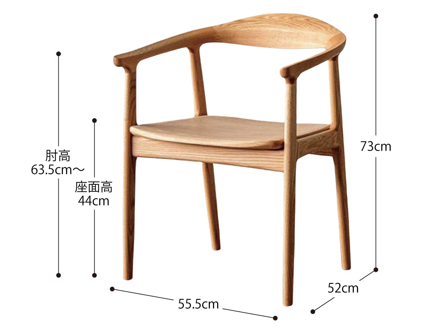 サイズ | W55.5 × D52 × H73cm | SH44 | AH63.5cm~ |