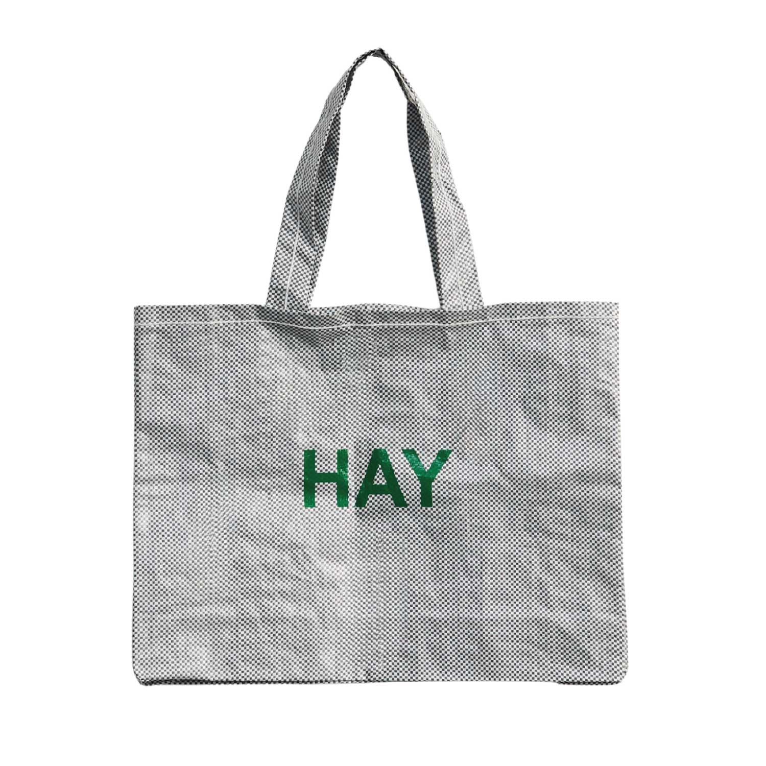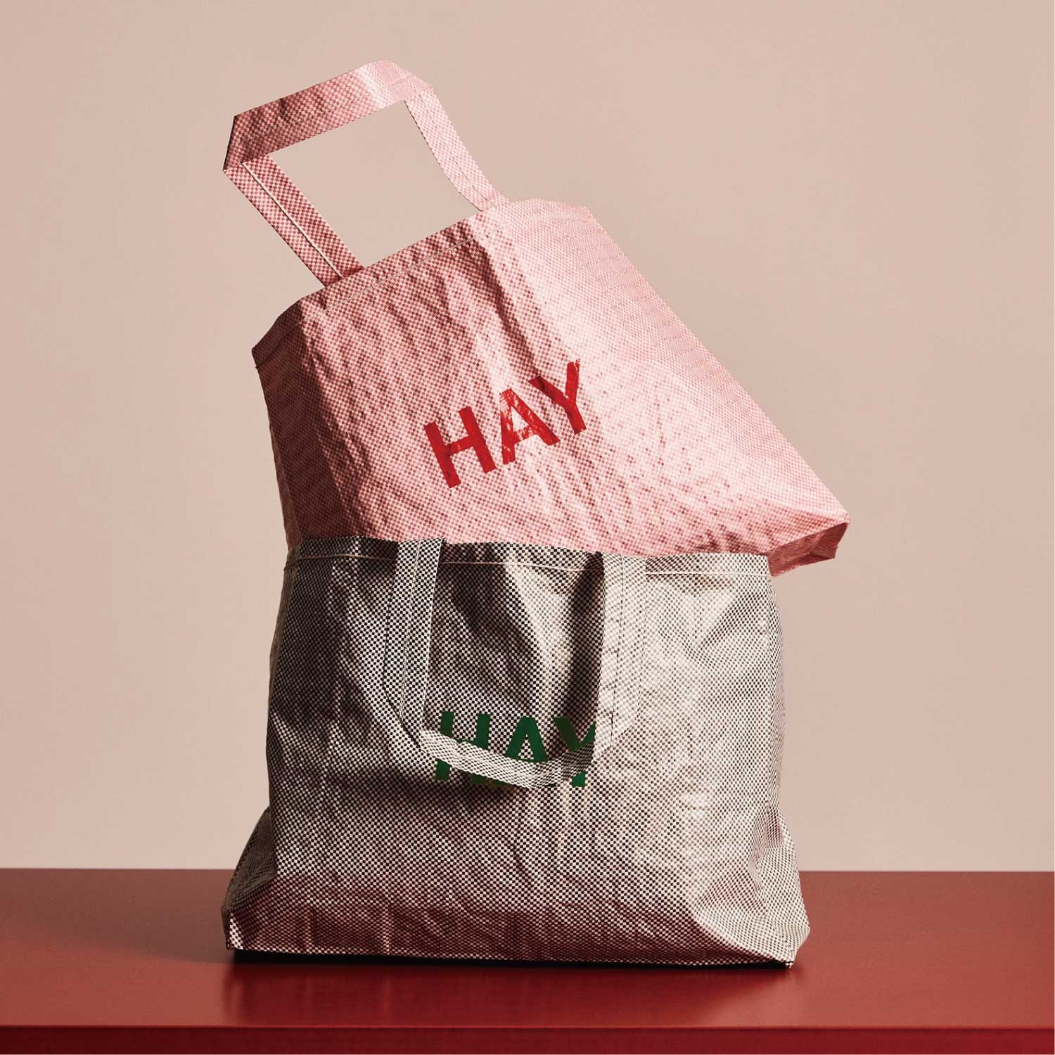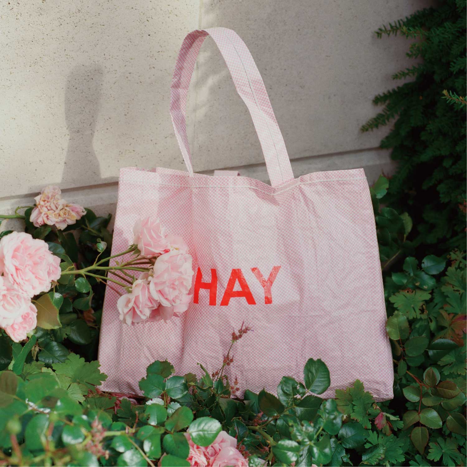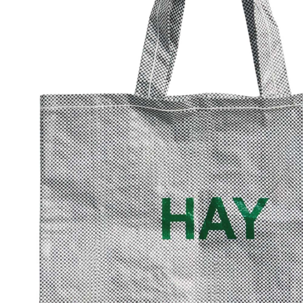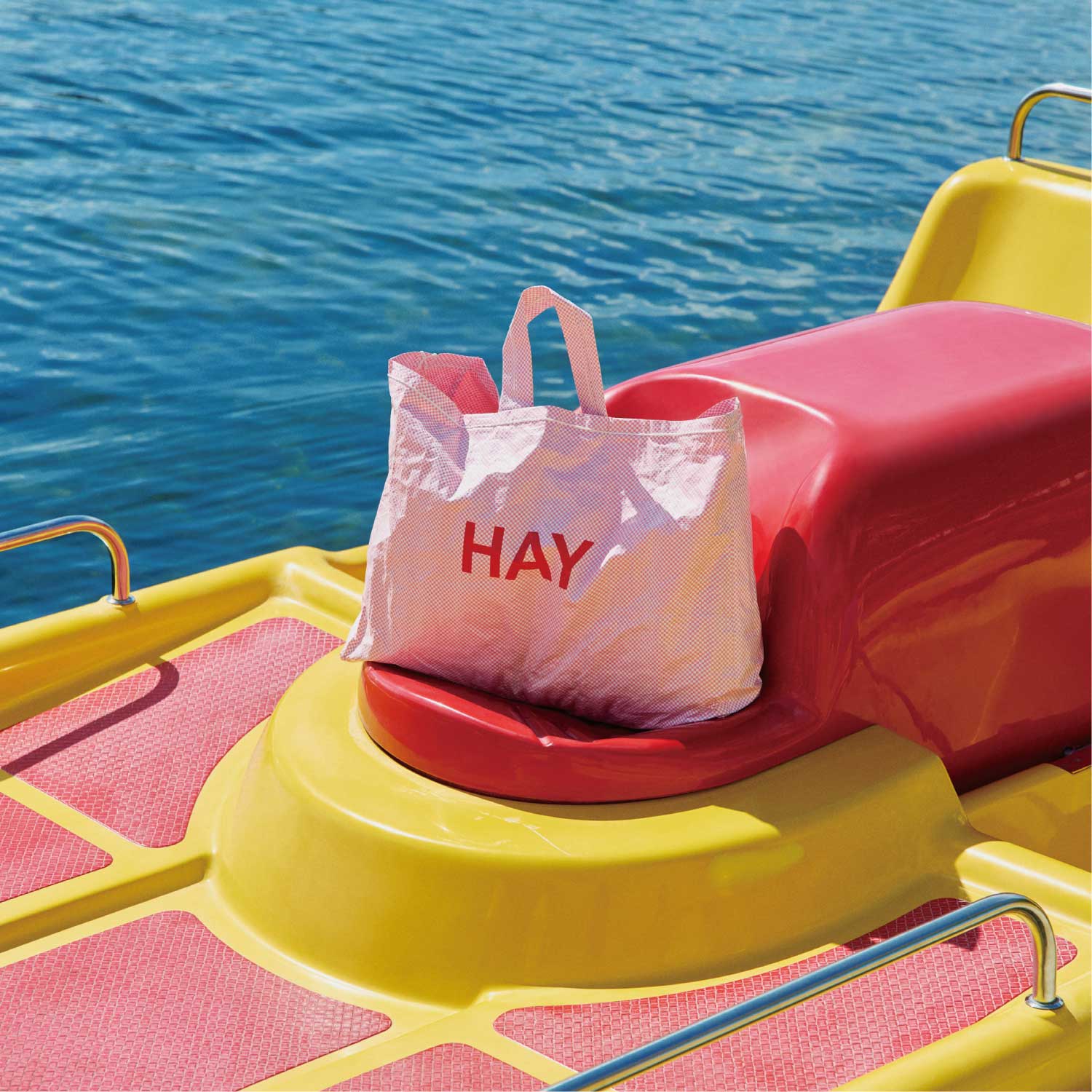 リサイクルプラスチックを80%使用した丈夫で耐久性の高い素材でできたCANDY MONO BAG。お買い物のほか、さまざまな日用品の持ち運びにぴったりな、カラフルで実用的なバッグです。HAYのロゴがコントラストの効いたカラーであしらわれています。